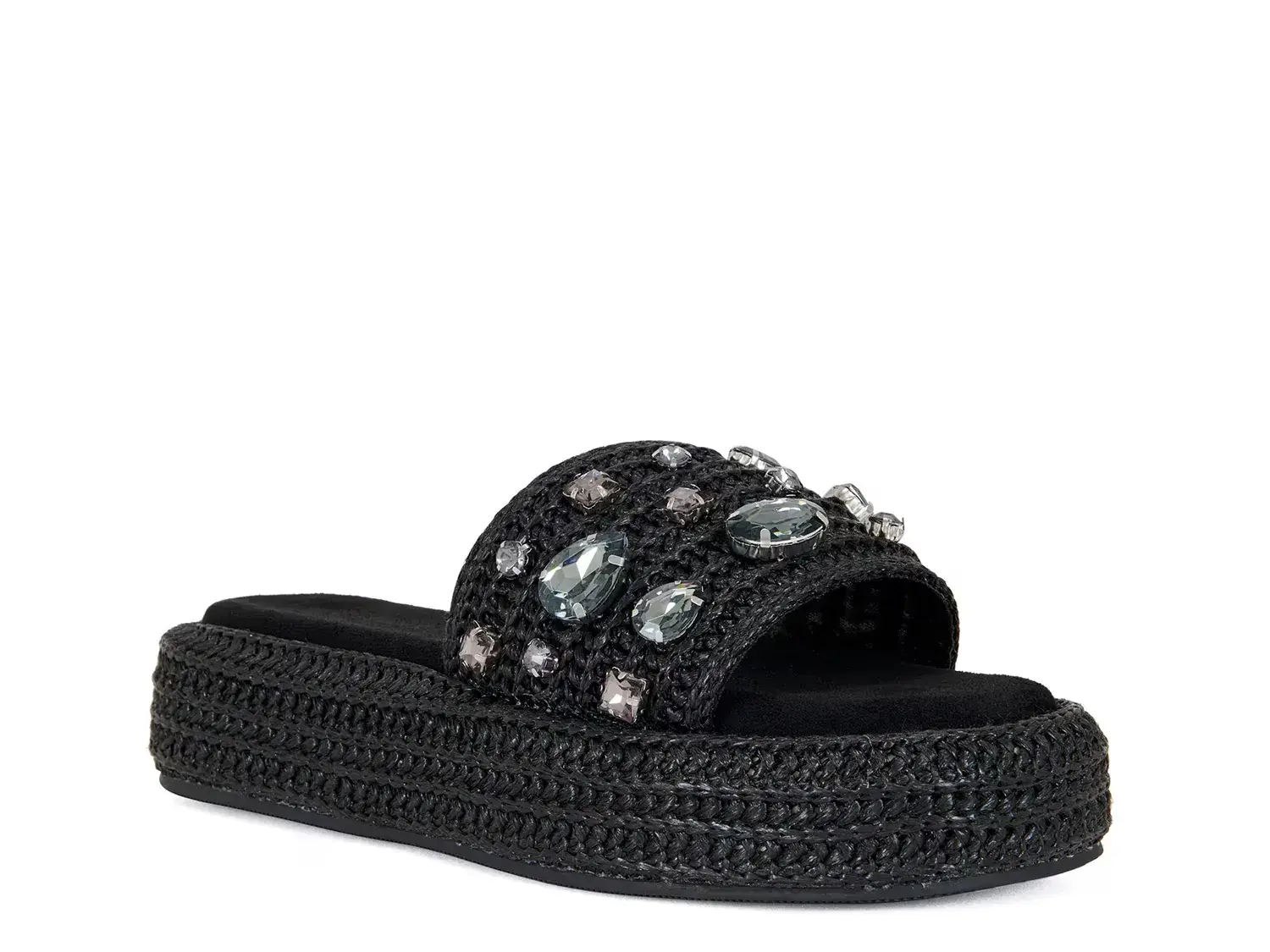 Наденьте сандалии на платформе Baste от Azalea Wang и излучайте атмосферу отпуска в каждом шаге. Толстая подошва придает образу стиль, а рафия на верхней части добавляет пляжное настроение. Завершено стразами, украшающими верх для дополнительного блеска.