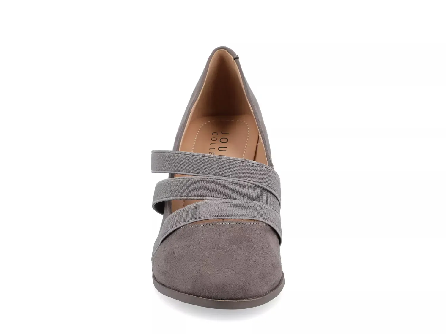 Дизайн в винтажном стиле подчеркивается на эластичных туфлях на каблуке от Journee Collection. Высокие туфли Loren имеют мягкий верх из искусственного замша и классический округлый носок с тройным эластичным ремешком на передней части.