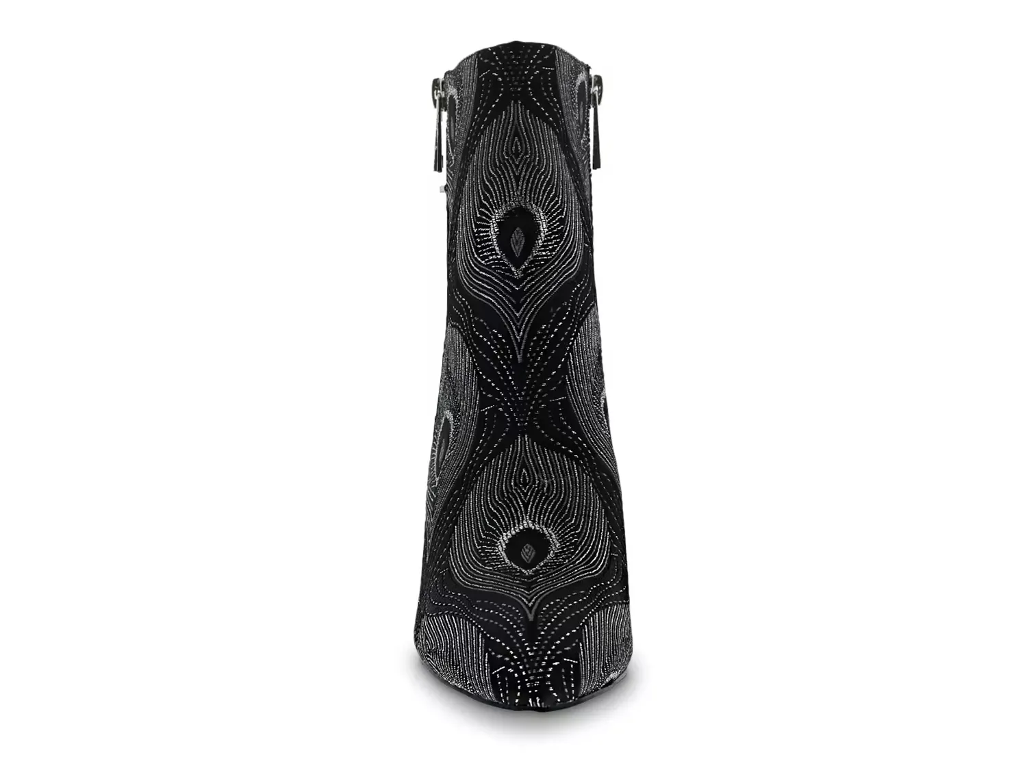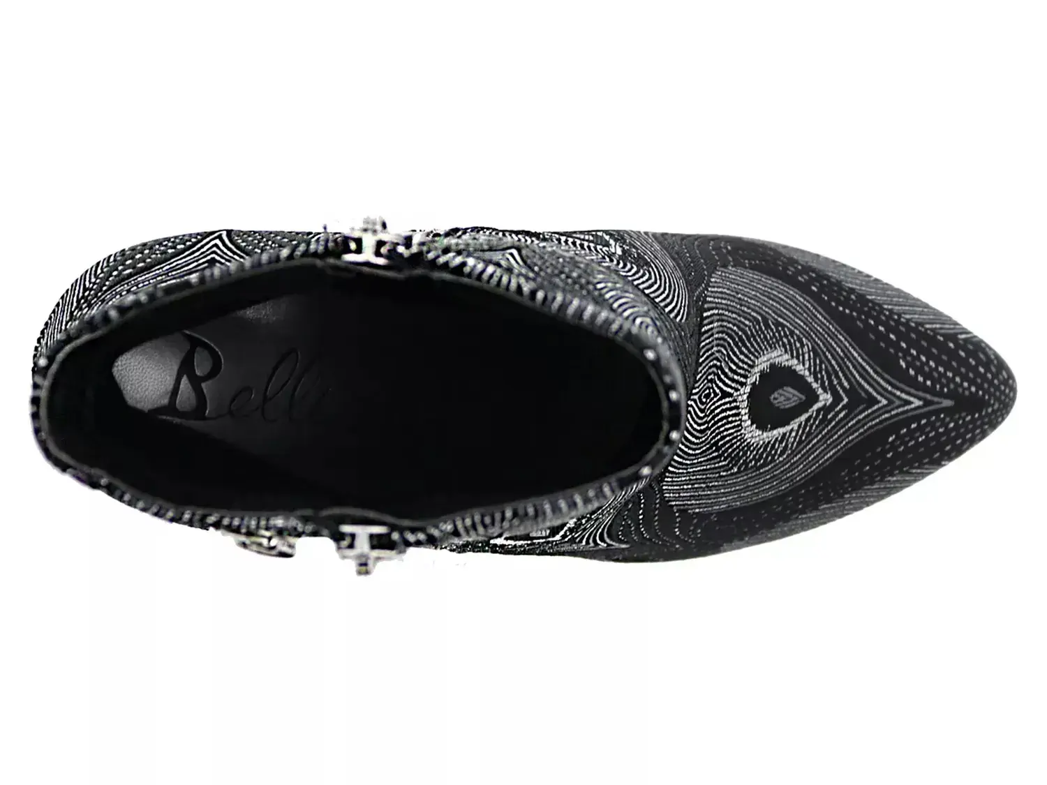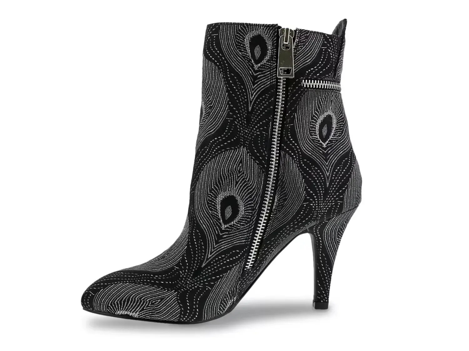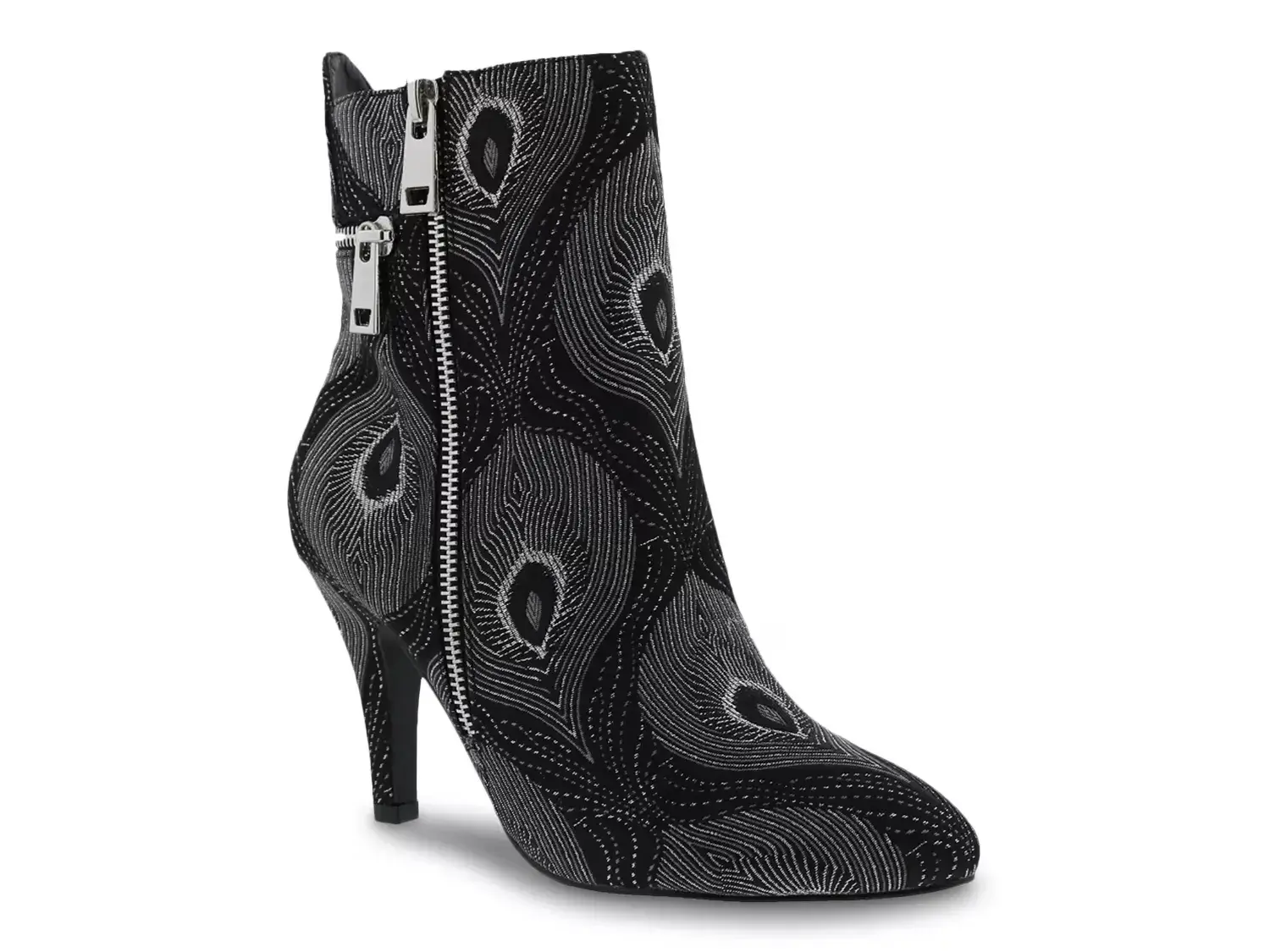 Ботильоны Claudette от Bellini могут добавить художественный акцент вашему ансамблю. Удивительные узоры павлинов и фальшивые наружные молнии привлекают внимание к этим ботильонам с миндальным носком. Соответствующий заостренный каблук придает элегантный подъем.