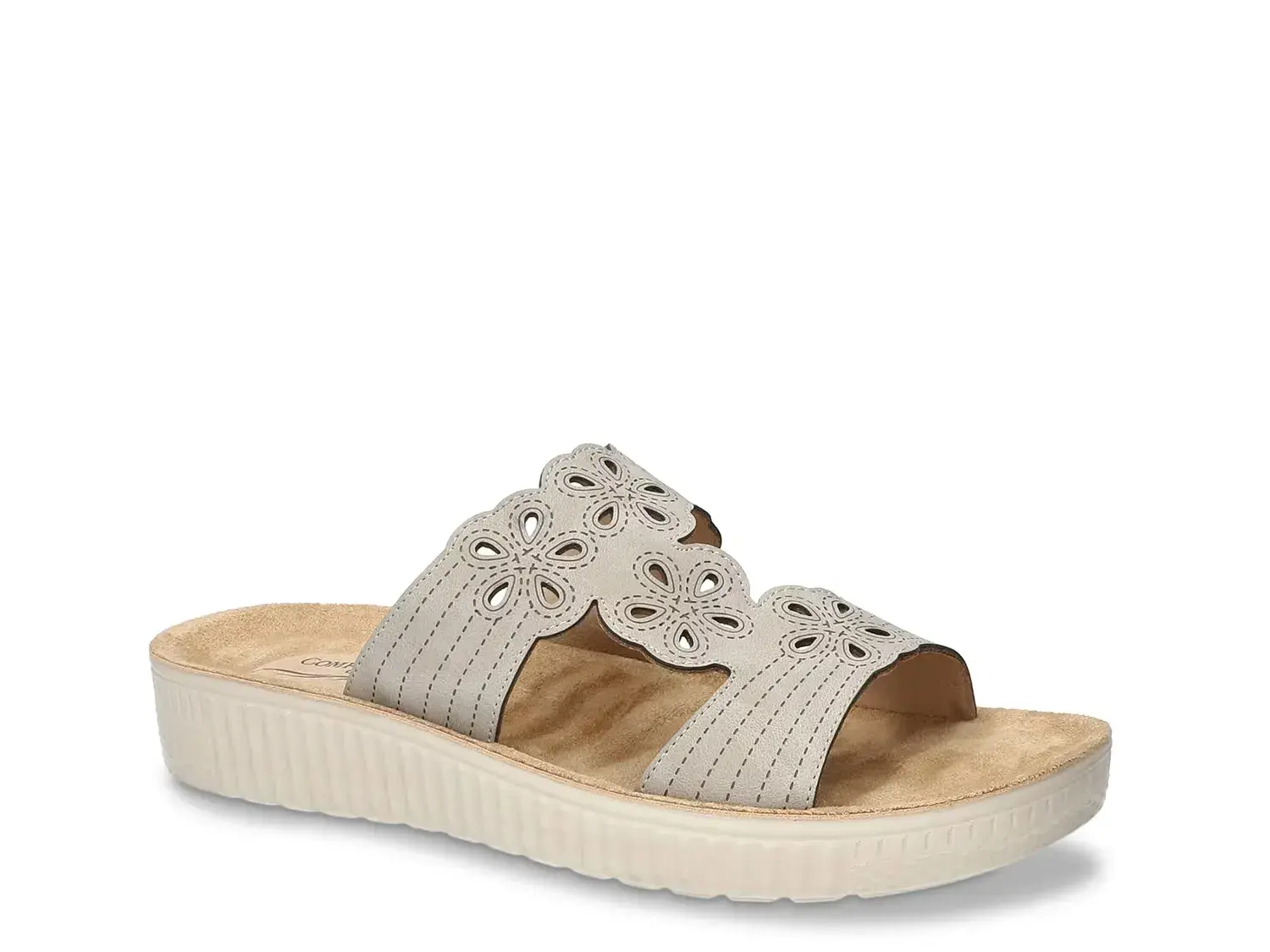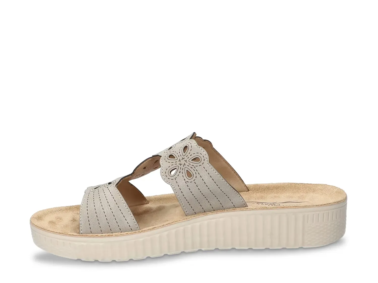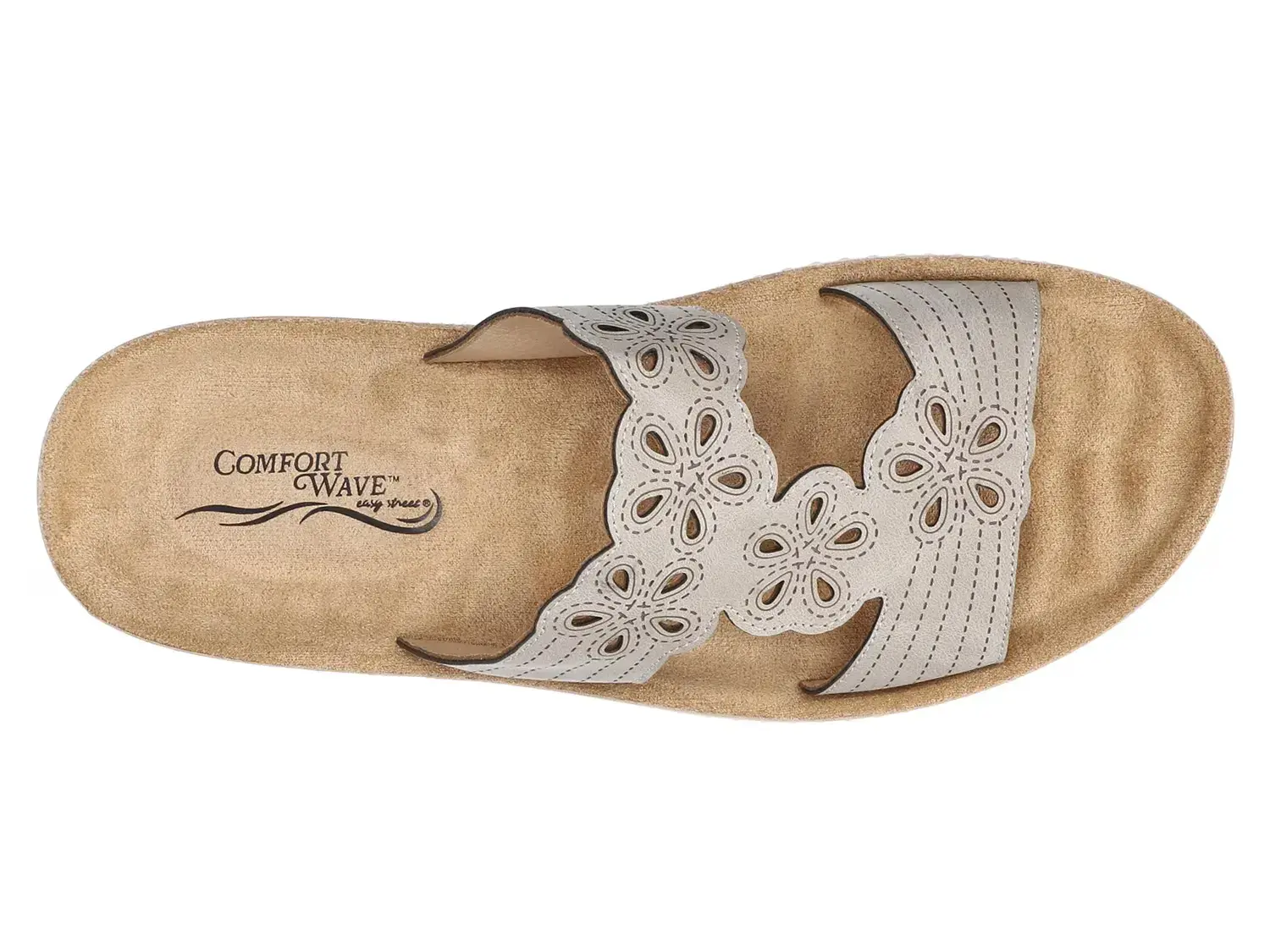 Добавьте стиля и комфорта с сандалиями Easy Street Taj. Цветочные вырезы придают этому слайду игривый акцент, а тисненые детали поднимают общий вид. Завершает все амортизация Comfort Wave и прокладки для комфортной походки.
