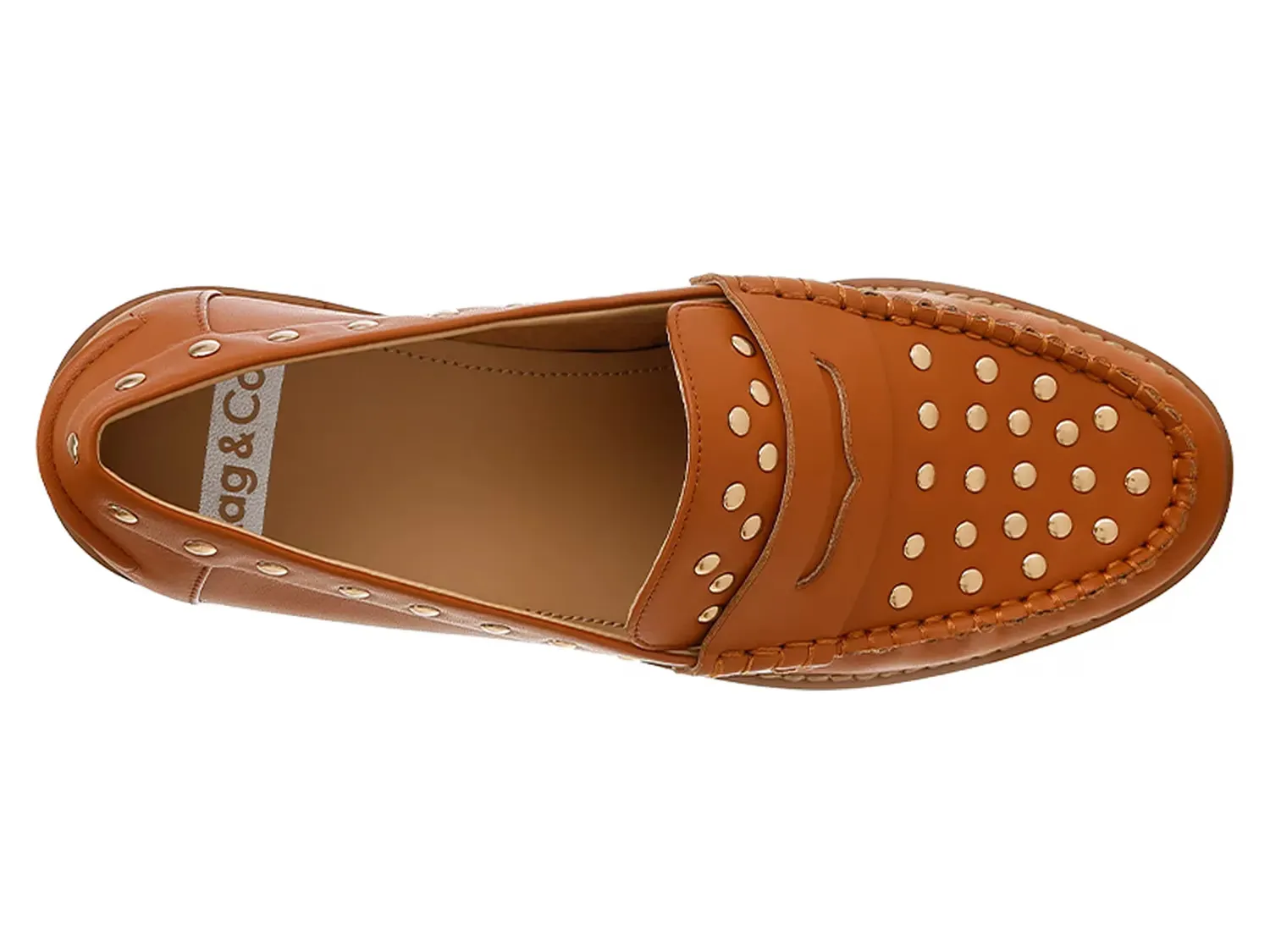 Наслаждайтесь украшенным поворотом на стиль с отделкой в лоферах Oglavia от Rag & Co. Кожаная пара обладает утонченным силуэтом, дополненным деталью с зажимом для монет, мокасиновым носком и вырезанной губой. Поднята металлическими шипами, которые добавляют дерзкий штрих.