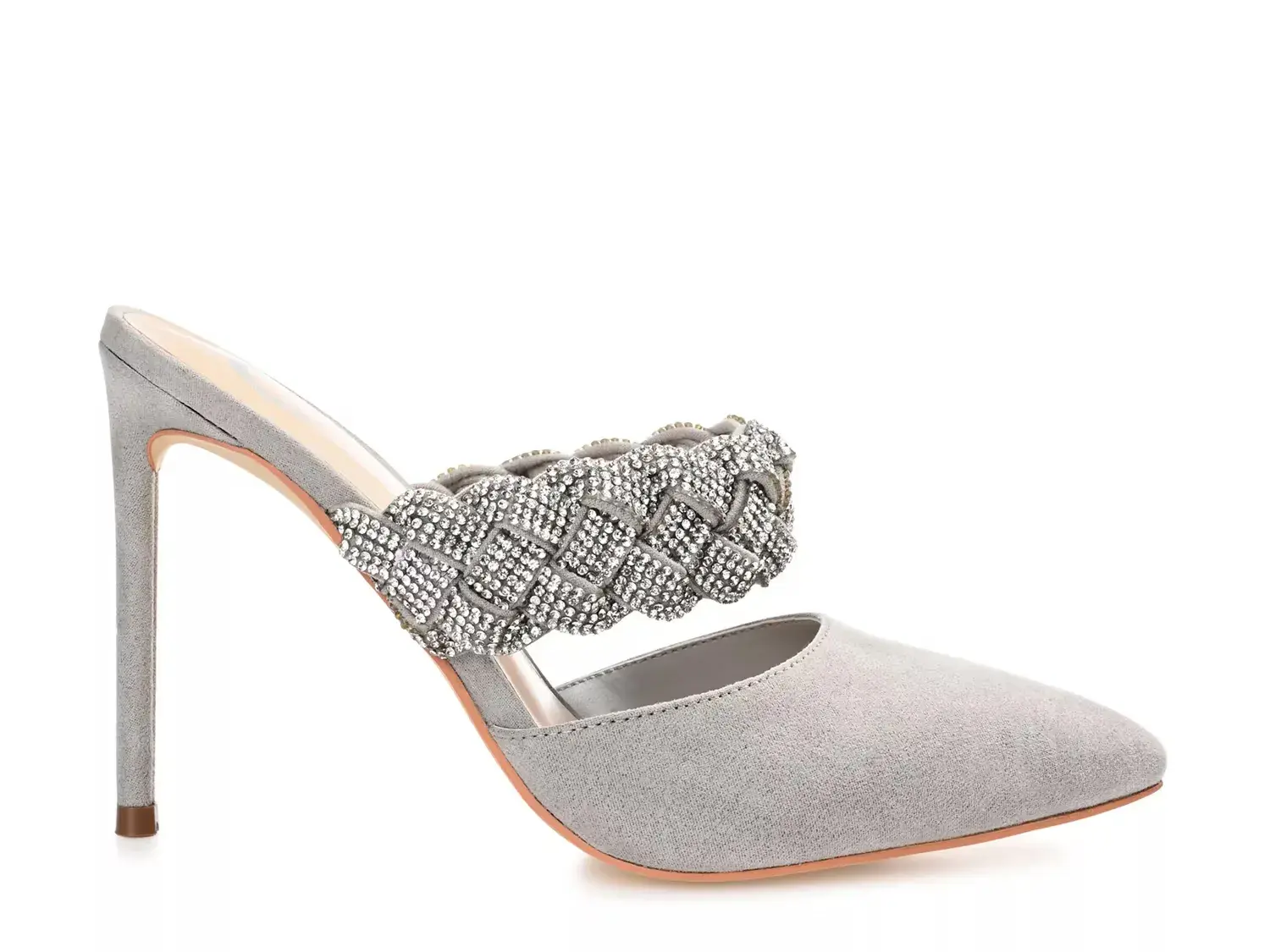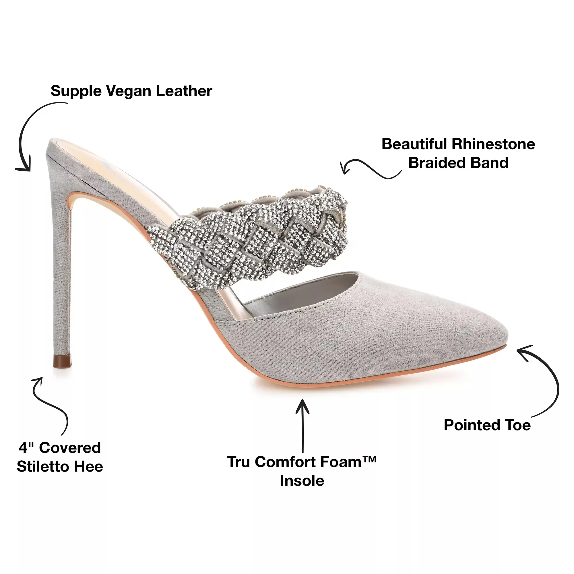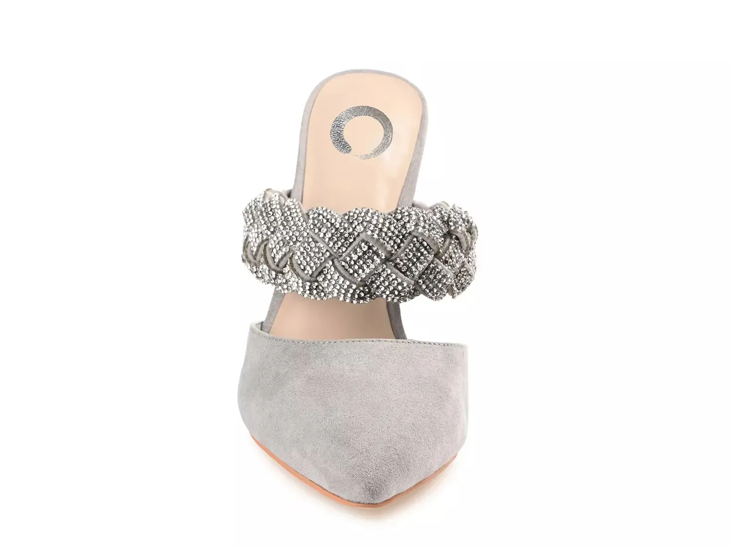 Поднимите градус стиля, прогуливаясь в мюле Journee Collection Hazzl. Изготовленные из мягкой веганской кожи, эти туфли с острым носком имеют тесьму с акцентом из страз, чтобы повысить вашу гламурность.