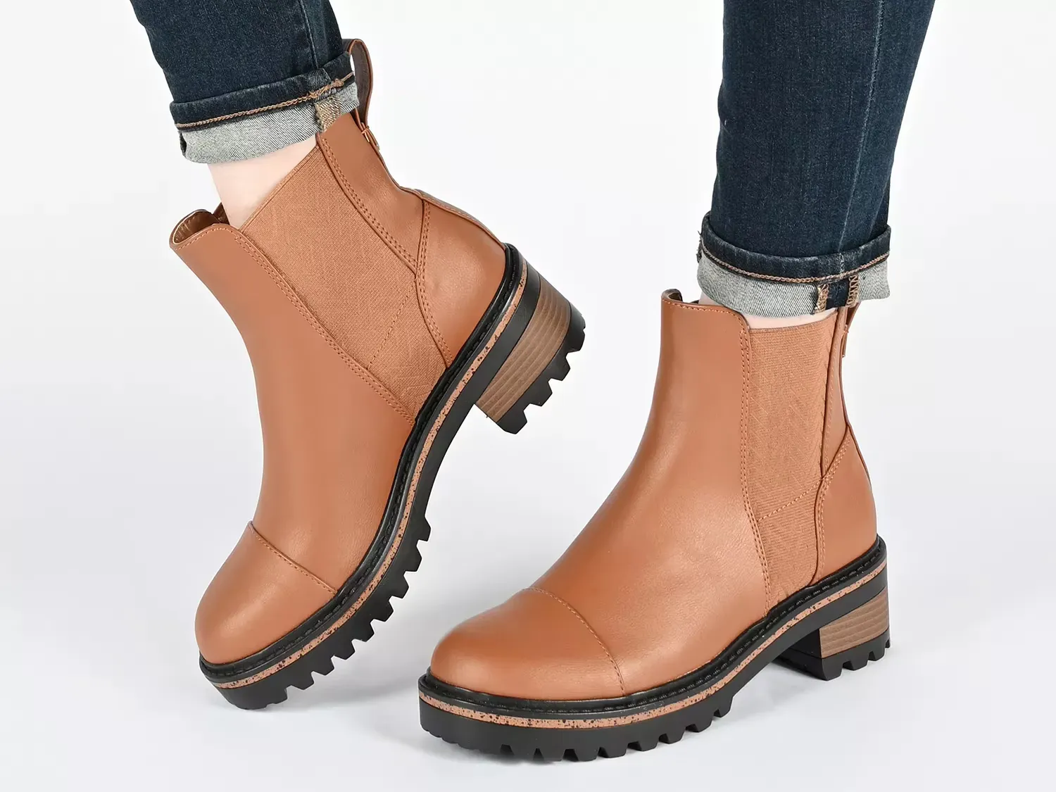 Классический дизайн получает шикарное обновление в ботинках Mirette Chelsea от Journee Collection. Этот ботинок по щиколотку оформлен узором "елочка" на растяжке и имеет низкий блочный каблук.