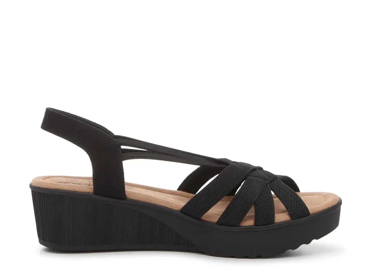 Сандалии на клине Evalina от Impo имеют ремешковый дизайн с добавленной резинкой для надежной посадки. Стелька с эффектом памяти защищает каждую ногу.