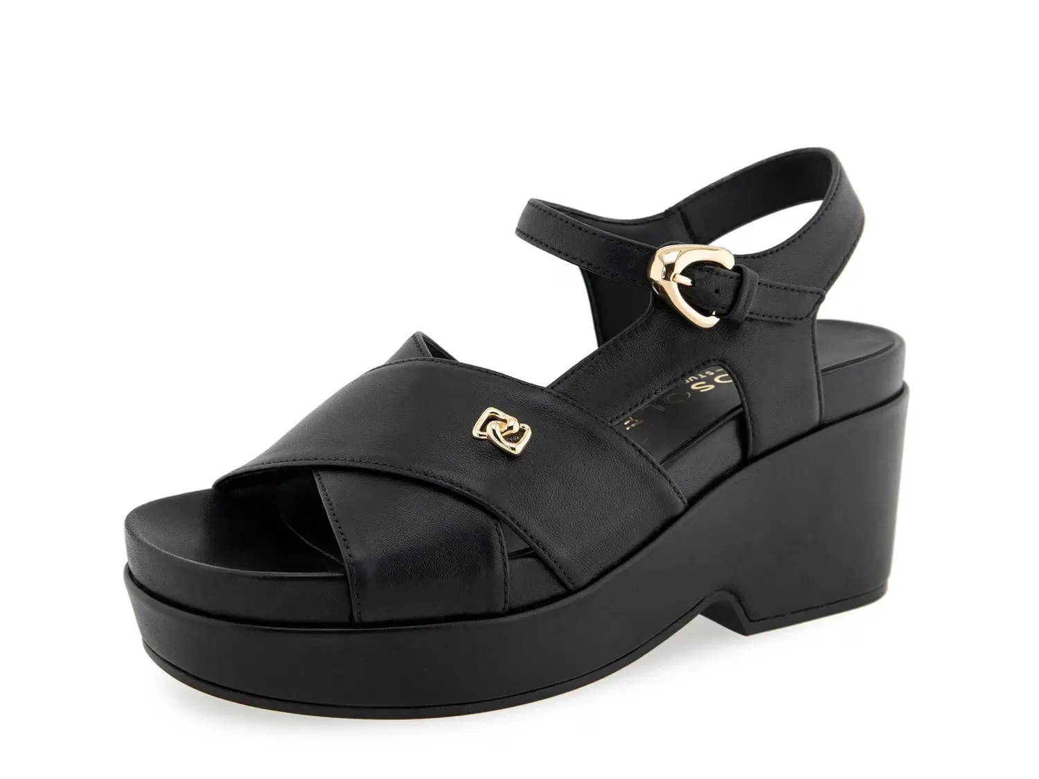 Добавьте модный шарм любому наряду с платформенными сандалиями Cora от Aerosoles. Эта кожаная пара имеет массивный каблук, перекрестные ремешки и золотистые металлические акценты для нотки блеска.