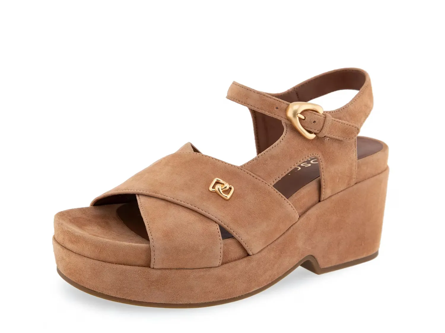Добавьте модный шарм любому наряду с платформенными сандалиями Cora от Aerosoles. Эта замшевая пара имеет толстый каблук, перекрестные ремешки и золотистые металлические акценты для нотки блеска.