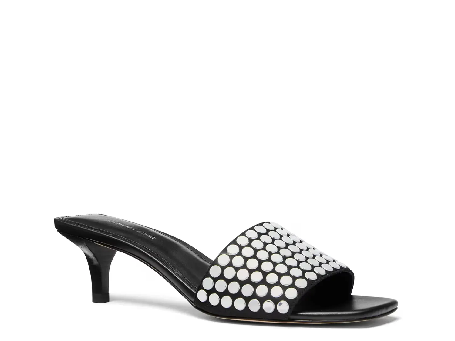 Добавьте смелый акцент к своим летним нарядам с сандалиями Merriam от Michael Michael Kors. Металлические заклепки привлекают внимание, а kitten heel придает вашему образу элегантность.