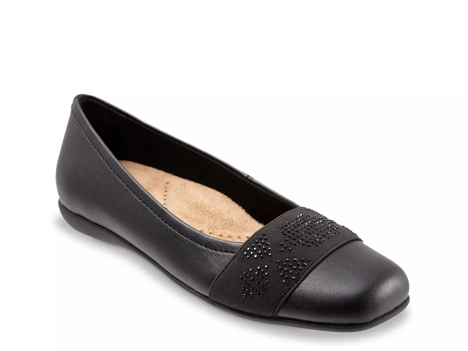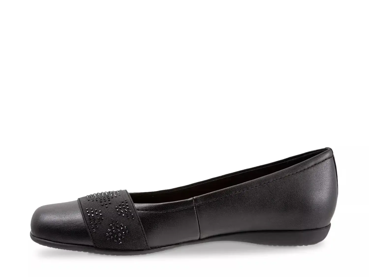 Балетки Trotters Samantha добавляют искристую нотку вашему повседневному образу. Рындончики, расположенные в геометрических узорах, украшают тянущуюся лямку на верхней части обуви, придавая этому слипонгу неповторимый шарм, в то время как перфорированная стелька с поддержкой свода стопы смягчает каждый шаг.