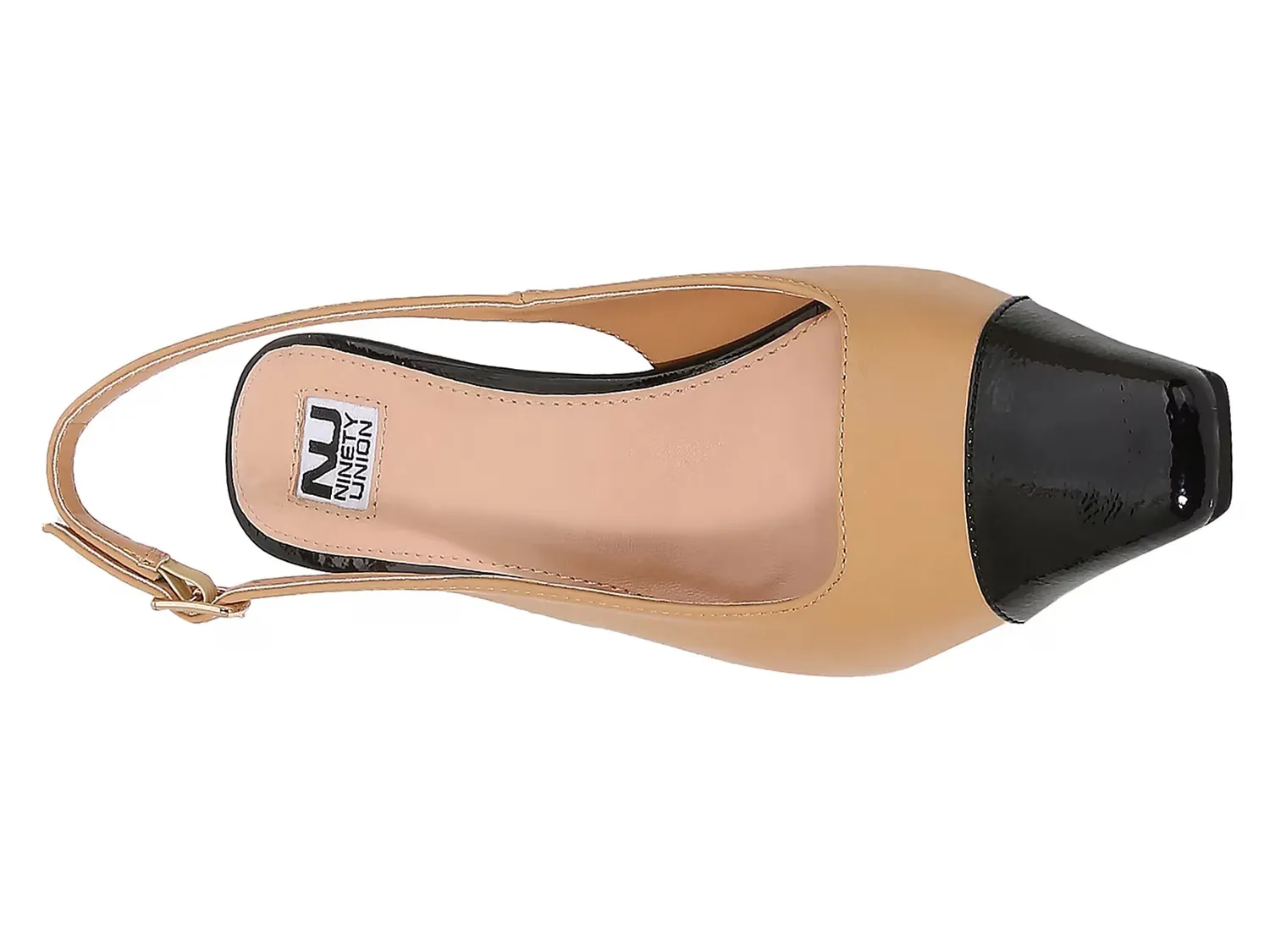 Завершите свои формальные образы с утонченным акцентом в туфлях Hazel от Ninety Union. Этот стильный сандал на ремешке дополнен полированным носом и изысканным блочным каблуком, украшенным блестящей металлической деталью.