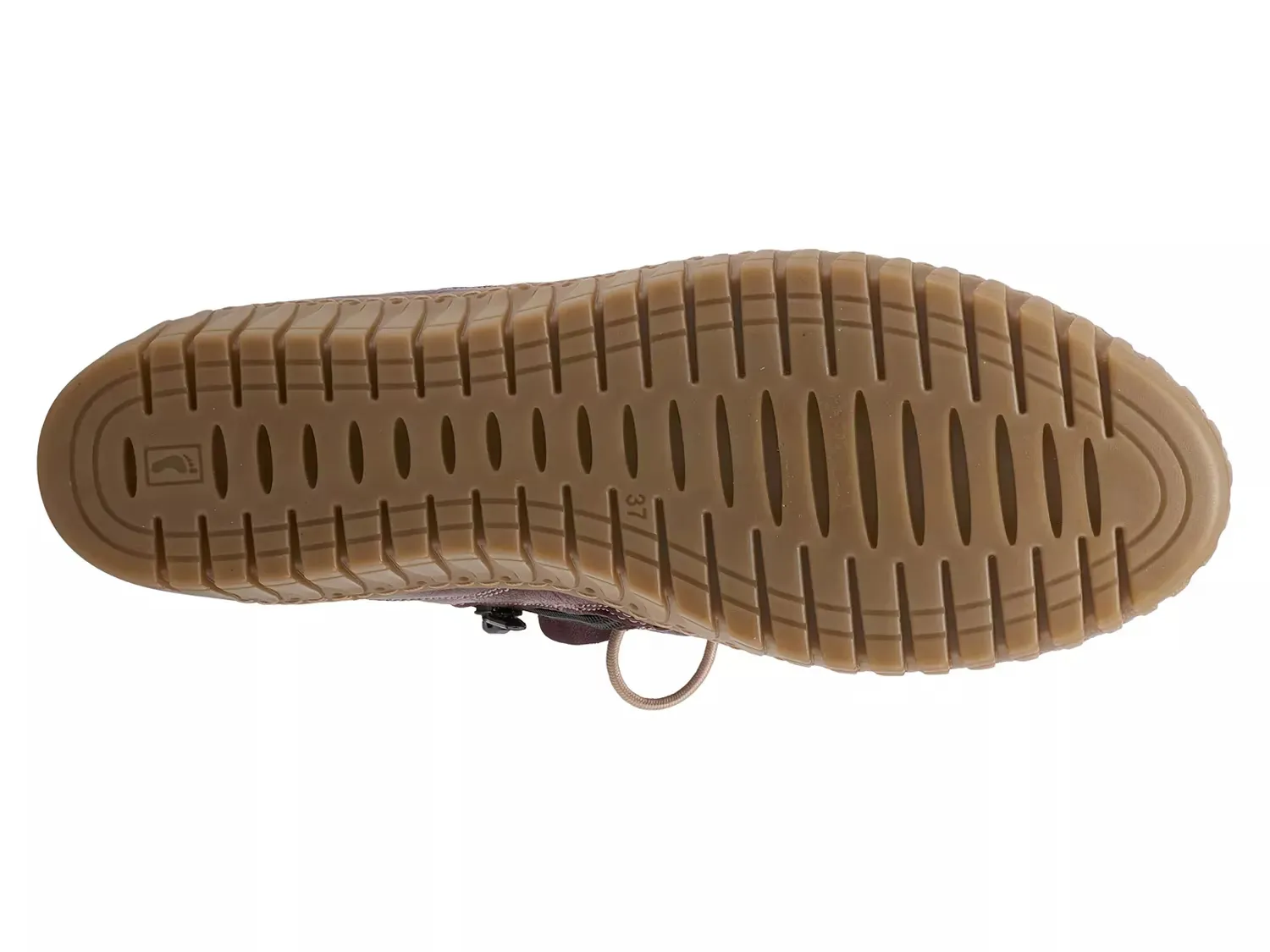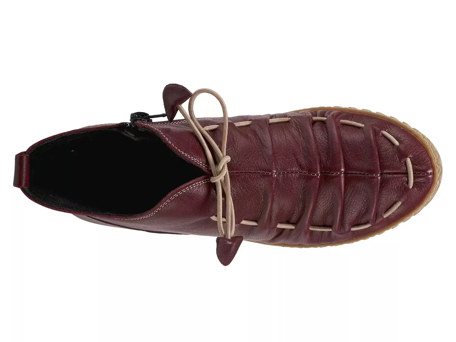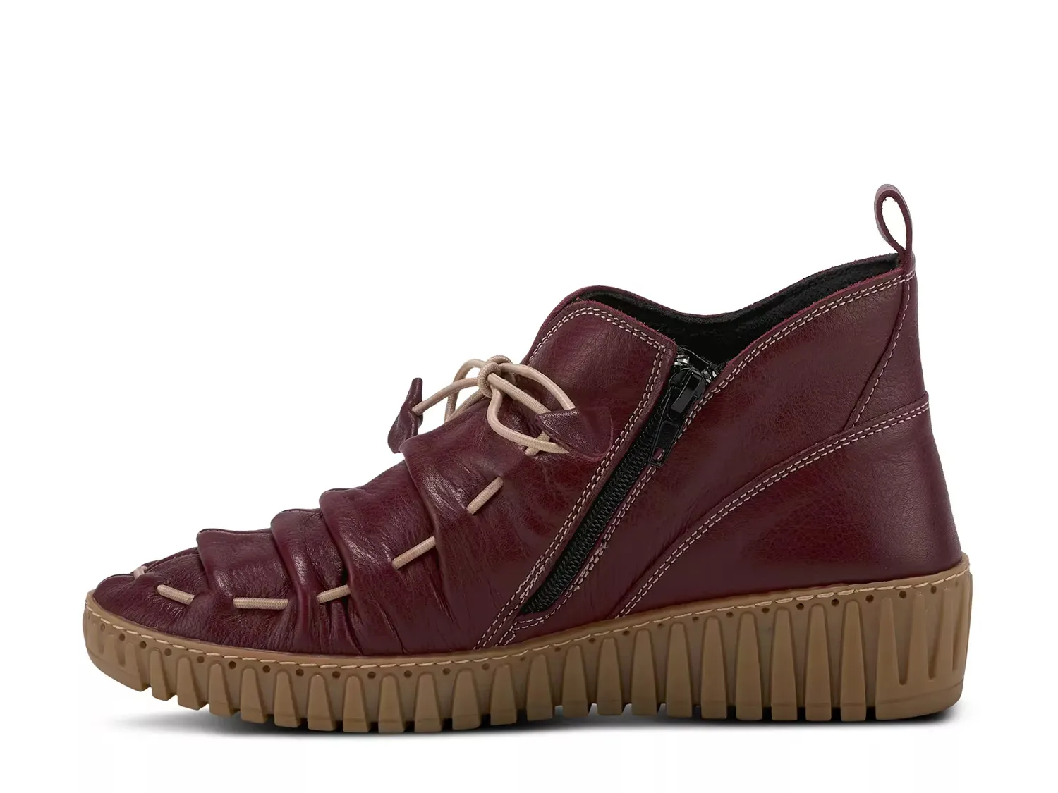 Эксцентричность ботинок Nespea от Spring Step, безусловно, удивит наблюдателя. Эластичный профиль, шнурки, идущие до носка, контрастные строчки, мягкая стелька и приподнятая, гибкая подошва делают этот ботинок на молнии очень модным и уютным.