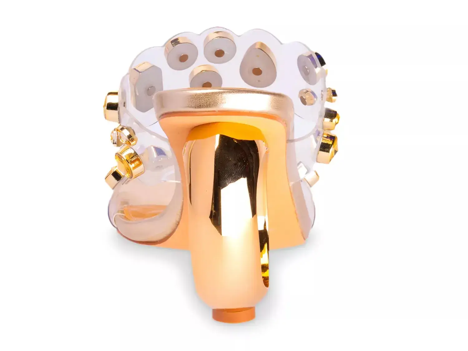 Покажите свою дерзкую сторону, надев сандалии Joyful от Ninety Union. Многоразмерные ювелирные акценты украшают эти шлепанцы, в то время как металлический закрученный каблук в форме пончика придаёт им модный вид.