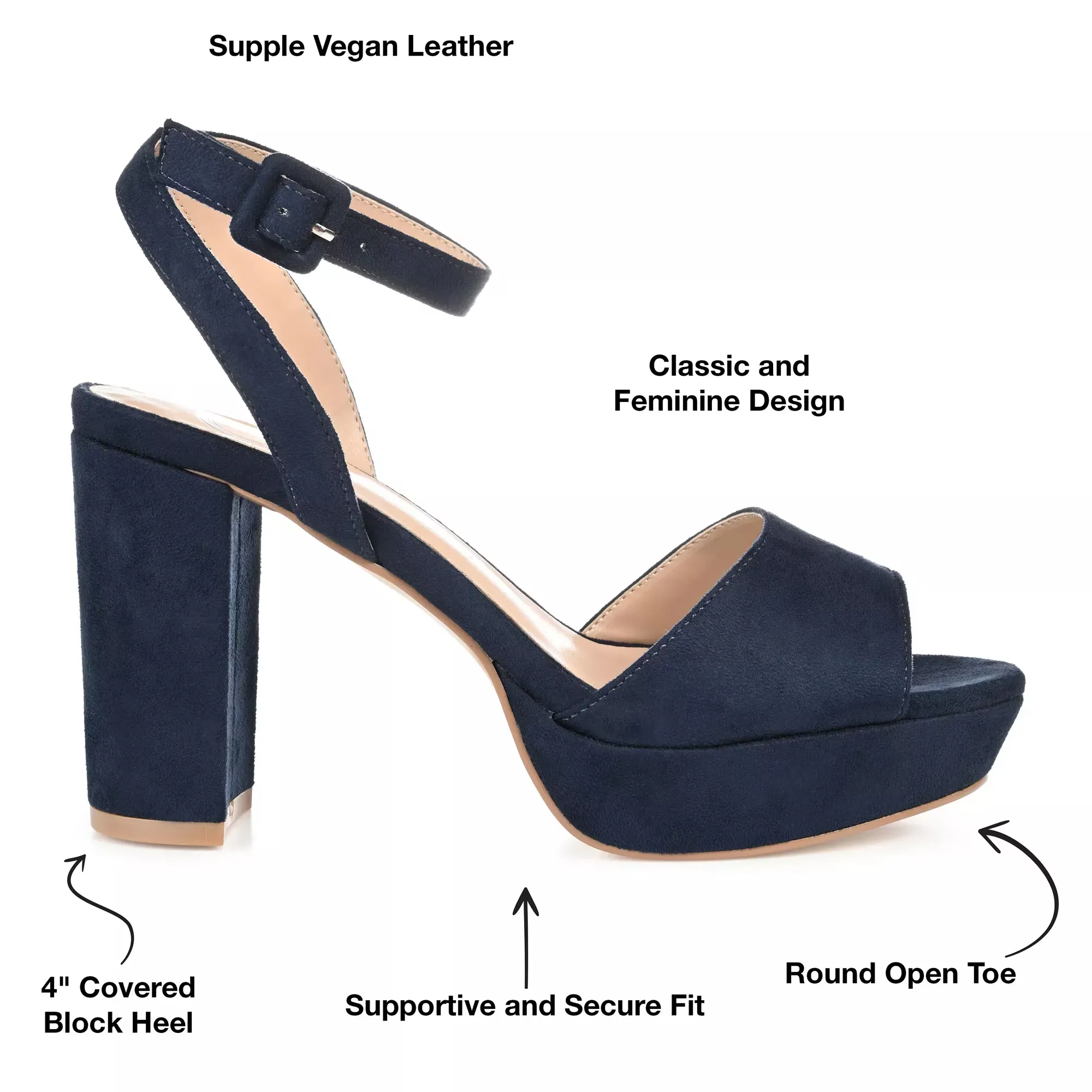 • ,75" платформа, 3,75" обитый квадратный каблук