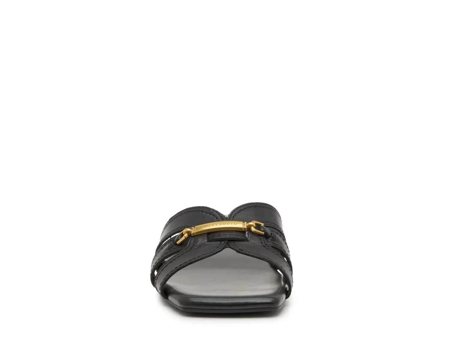Наденьте сандалии Arisha от Vince Camuto для стильного дополнения к вашему летнему образу. Эта кожаная модель оснащена ремешками и элегантной золотистой фурнитурой с логотипом, добавляя немного блеска.