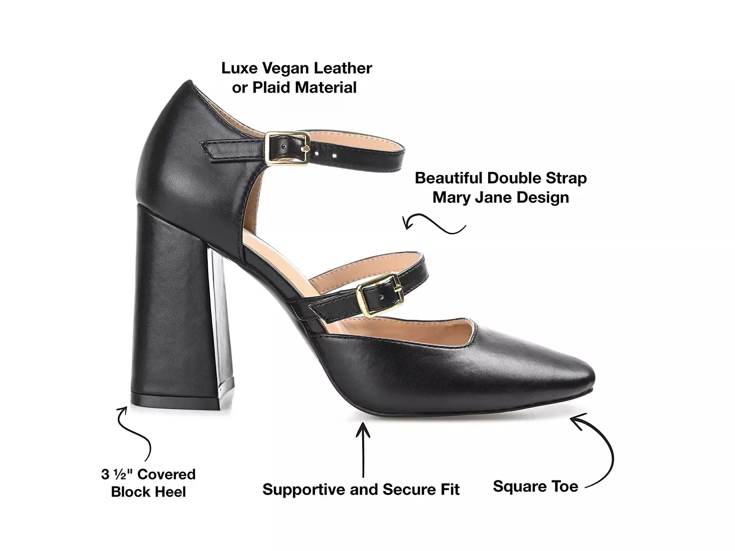 Получите этот утонченный винтажный стиль в великолепно выполненных туфлях Isadorah от коллекции Journee. Регулируемые двойные ремешки и массивный квадратный каблук придают современный штрих этой классической модели-мери джейн. Стелька щедро амортизирована, чтобы свести к минимуму усталость ног, а прочная синтетическая подошва завершает дизайн.