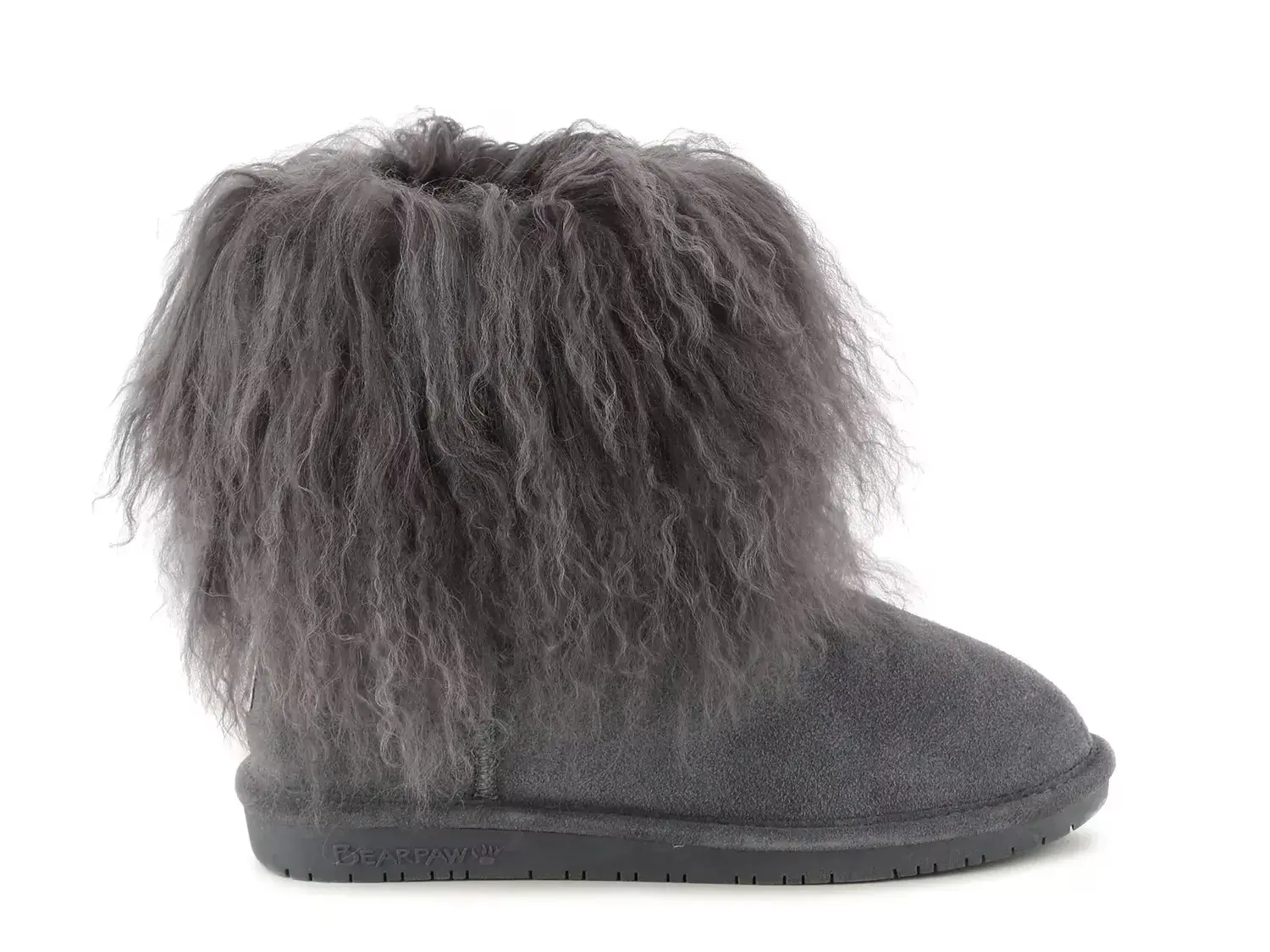 Подготовьтесь к холодной погоде с этими замшевыми ботильонами от Bearpaw! Ботильоны Boo милые, удобные и идеально подходят для зимы, чтобы ваши пальцы ног были уютными и тёплыми круглый сезон.