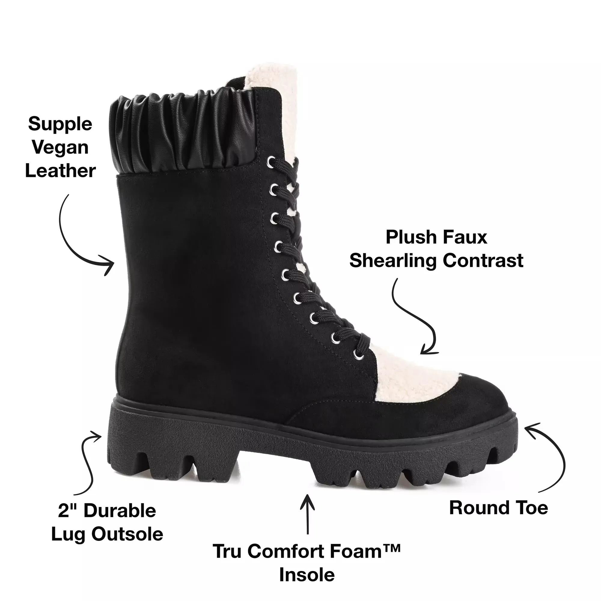 Пора выйти на новые просторы с ботинками для походов Elinor от коллекции Journee. Эти ботинки на шнуровке имеют рюши на лодыжке, уютную отделку из искусственного овечьего меха и стельку из 6-мм удобной пены Tru Comfort, дополненную подошвой с протектором.
