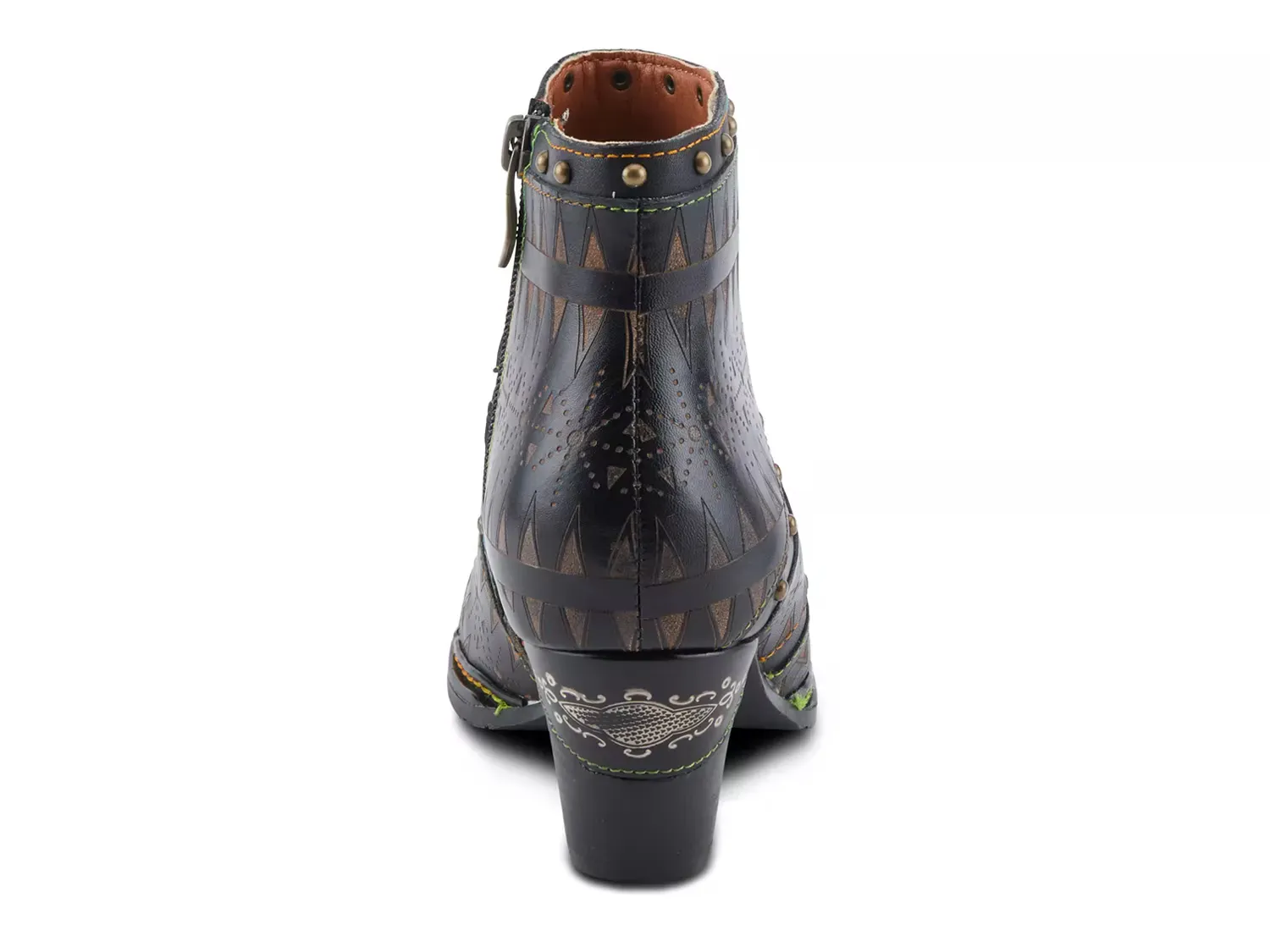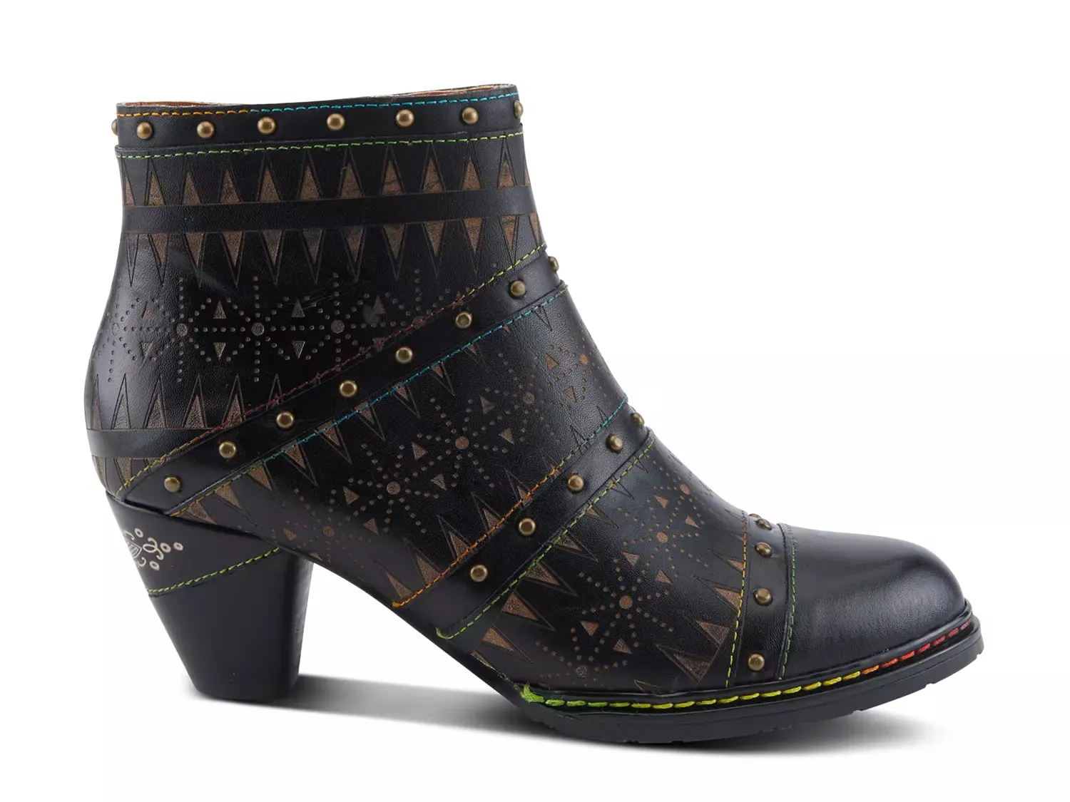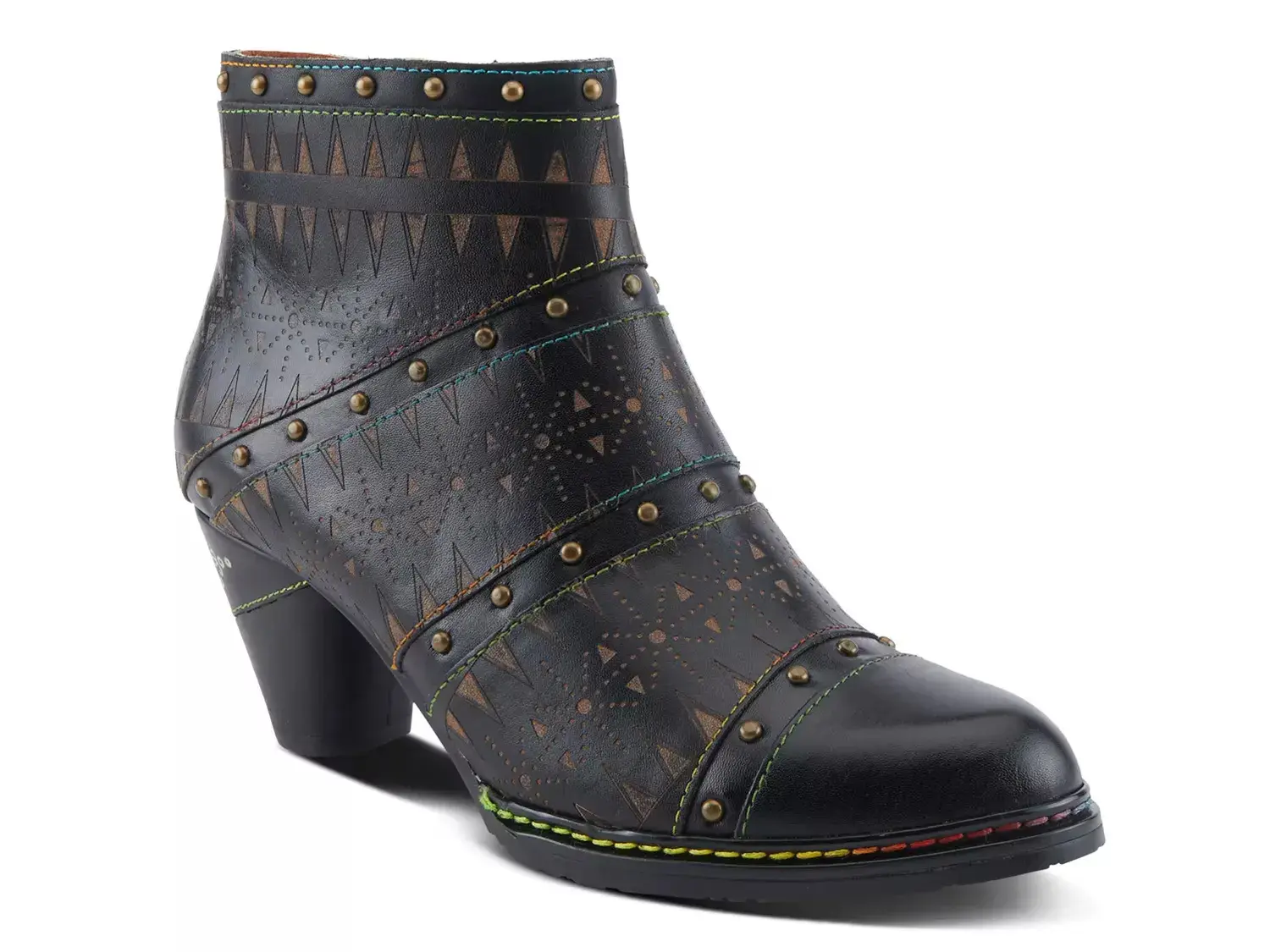 Привлеките внимание всех к своему образу с ботильонами L'Artiste Niobe. Красивые гравированные узоры между золотыми заклепками на верхней части ботильонов придают им привлекательный вид. Частично сложенный и частично закрытый квадратный каблук создает эффектный вид.