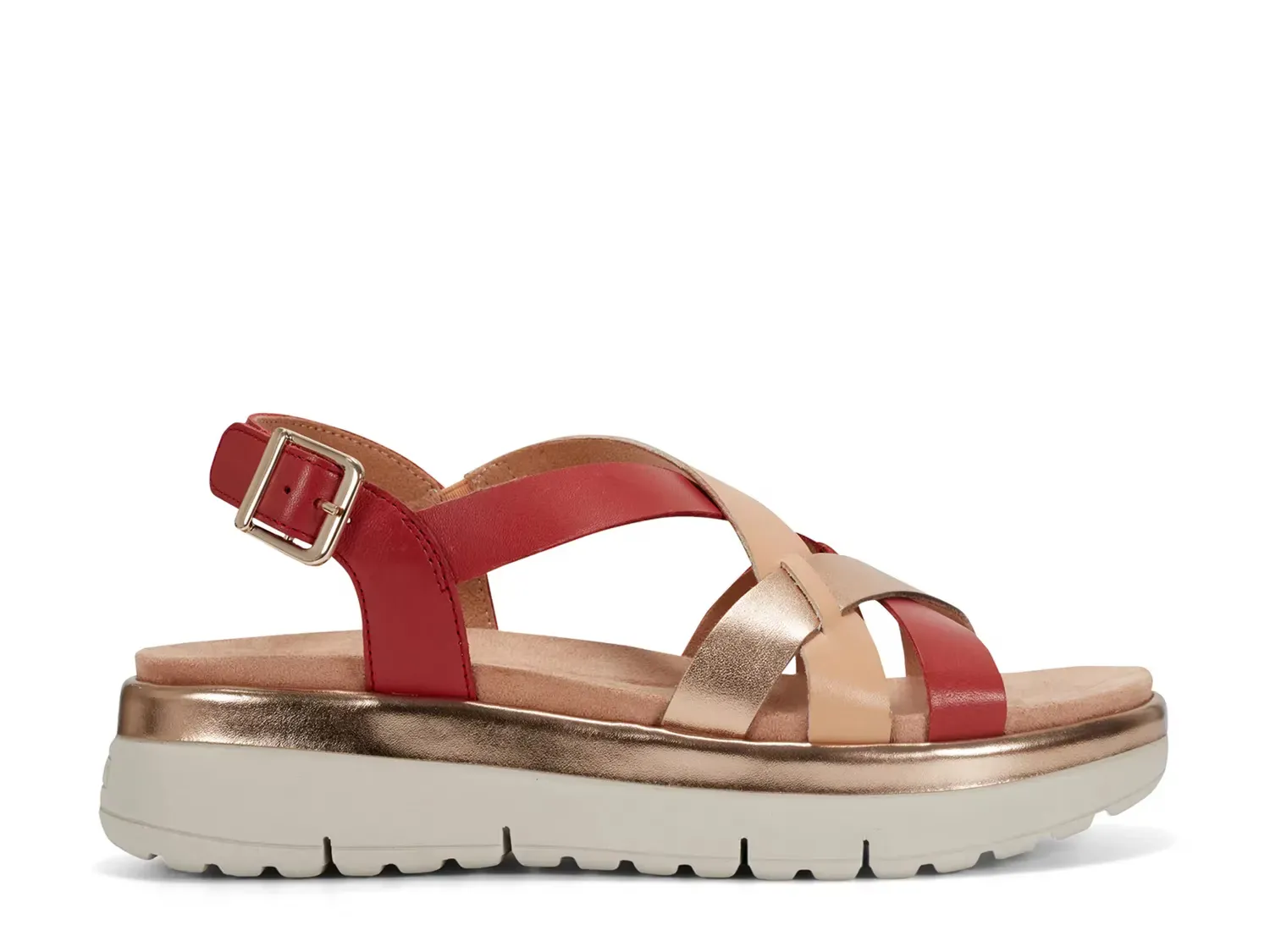 Сандалetten Easy Spirit Indie на клине оформлены множеством перекрещивающихся ремешков, что выделяет ваш стиль. Изготовлены из легких материалов, с мягкой стелькой и поддержкой свода стопы для максимального комфорта.