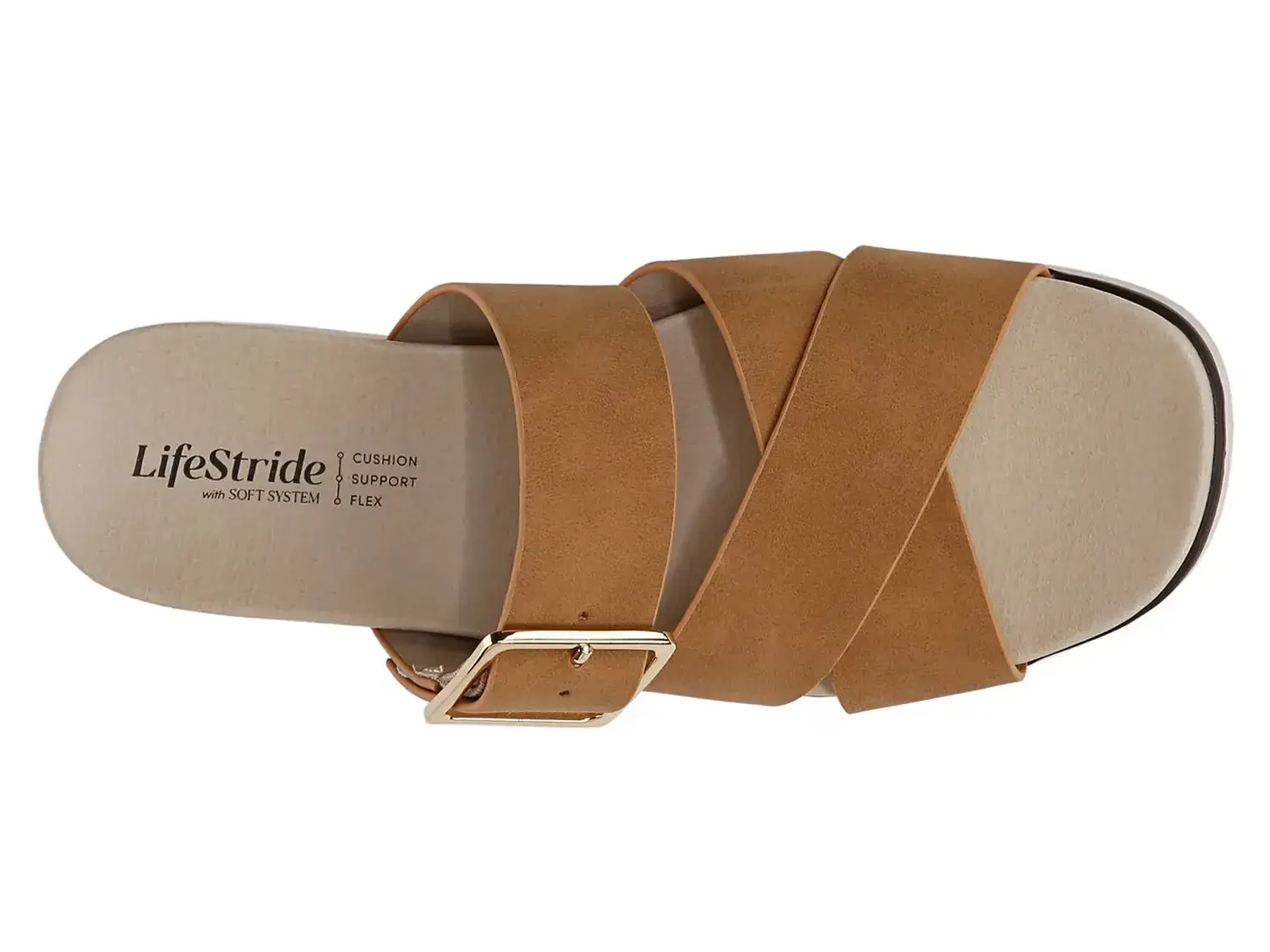 В этом теплосезонном сезоне наденьте свою новую любимую пару сандалий на платформе Getaway от LifeStride. С декоративной пряжкой и легким дизайном, эта пара обеспечивает комфорт на весь день благодаря его надежной технологии комфорта Soft System, которая предлагает непревзойденную амортизацию, поддержку и гибкость.