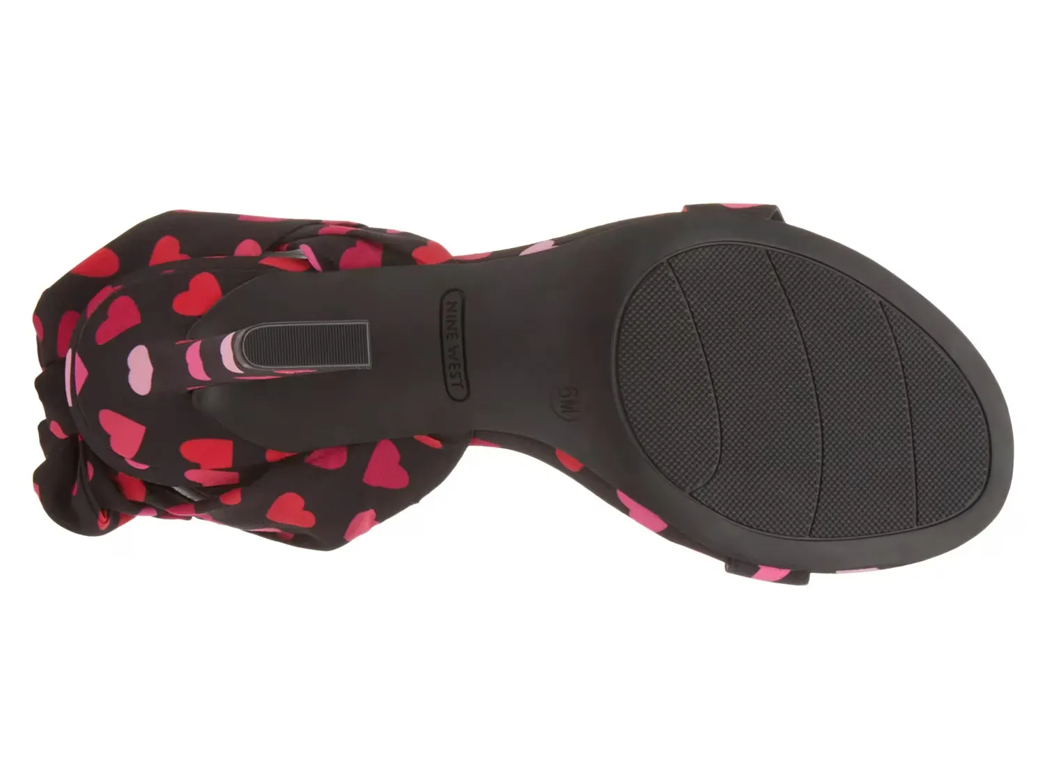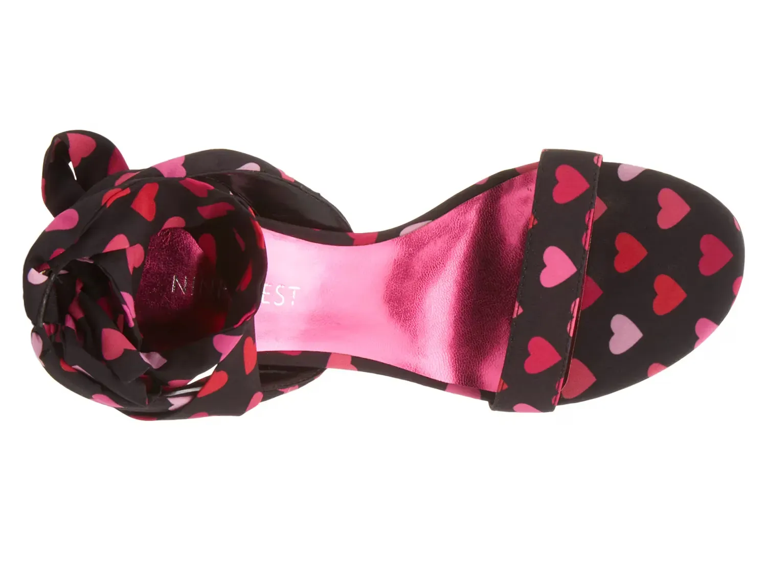 Влюбитесь по уши в сандалии Kobs от Nine West! Вы обязательно полюбите модный расклешенный каблук, завязку на щиколотке и игривые детали с сердечками.