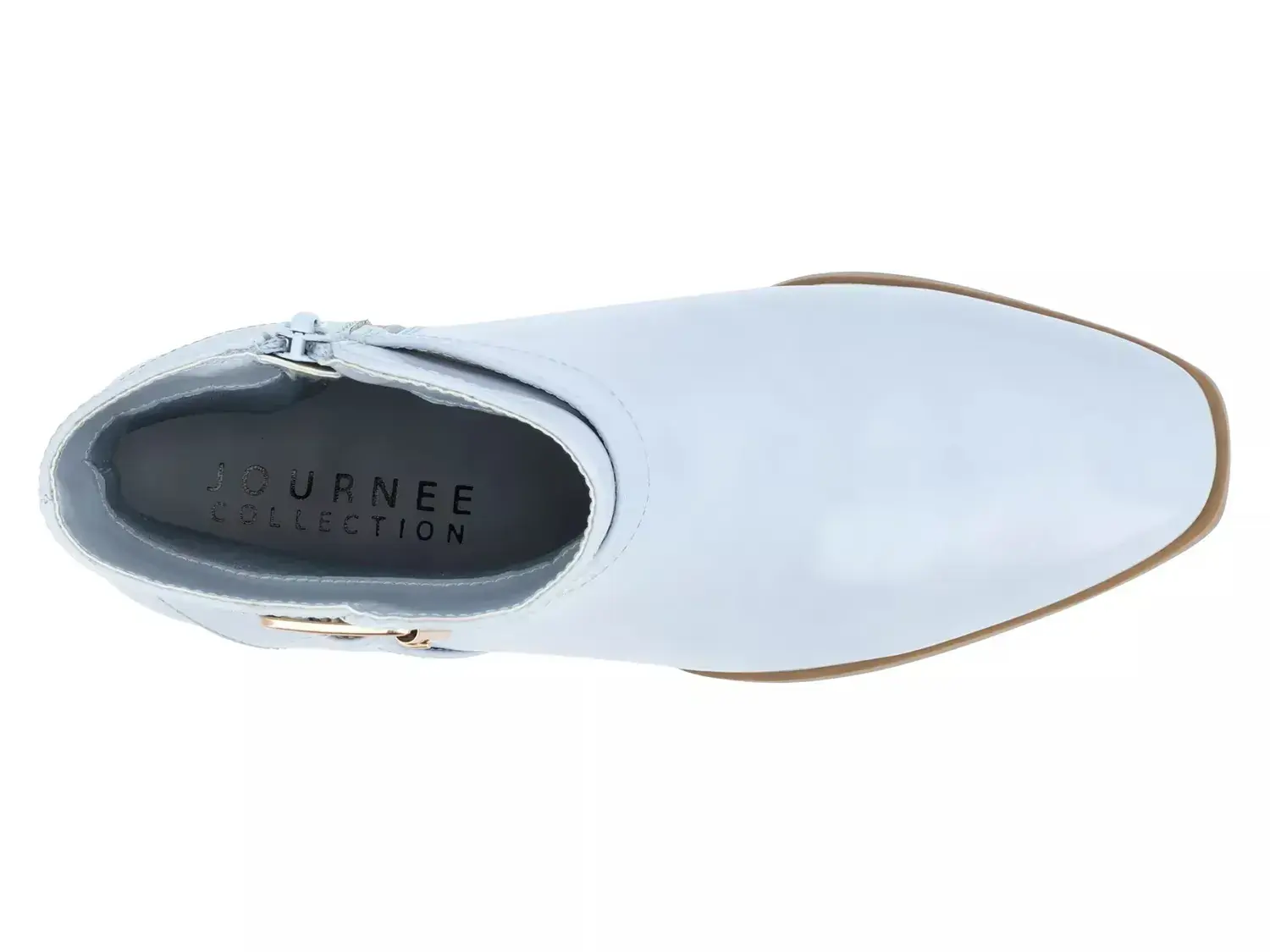 Побалуйте свои ноги стильным и уютным образом ботинок Journee Collection Elley. Пряжка и металлические детали отражают вдохновение от конного спорта, а устойчивый ботинок с открытым носком дополнен удобной стелькой из Tru Comfort Foam. Неподдельный блокированный каблук обеспечивает дополнительную поддержку.