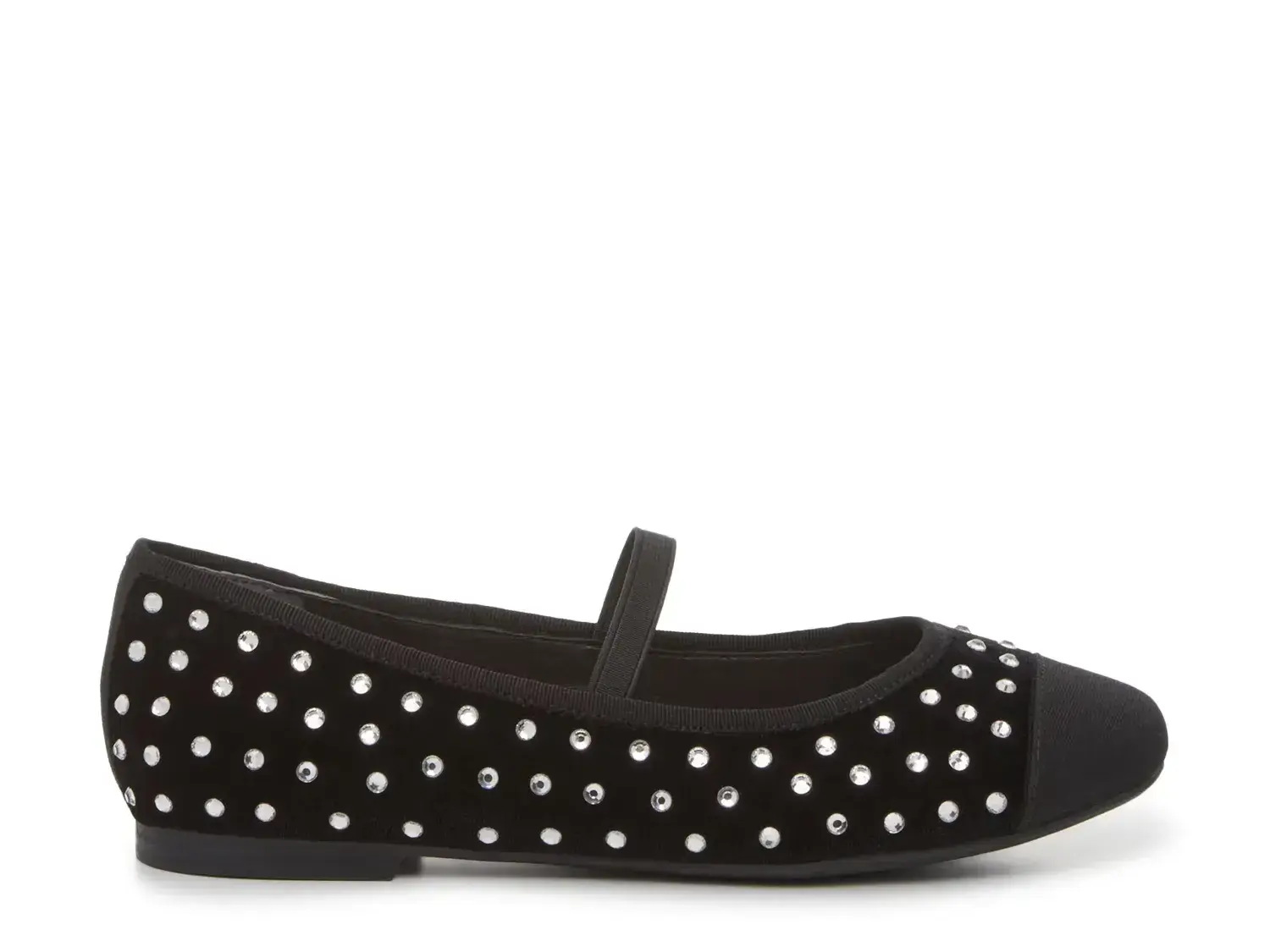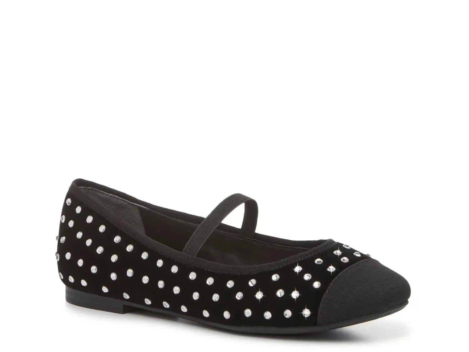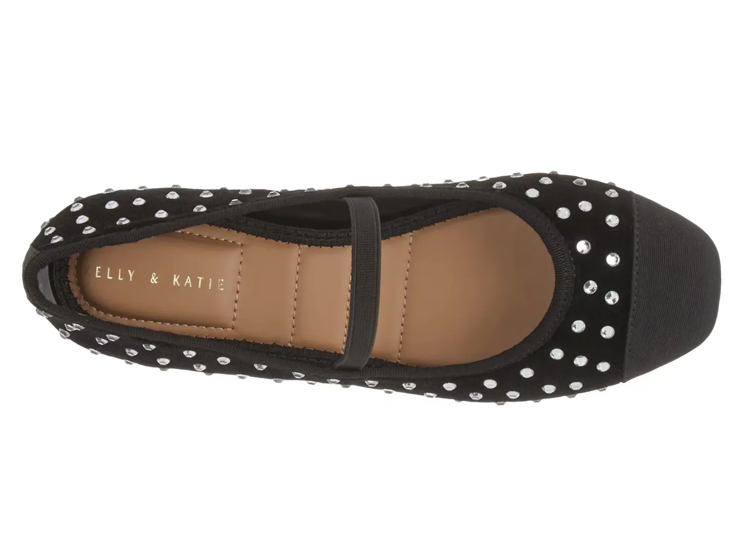 Добавьте искрящийся акцент к простому стилю с балетками Sienna от Kelly & Katie. Обладая силуэтом, вдохновленным пуантами, эта пара выполнена с квадратным носком и каплевидным дизайном. Украшена блестящими стразами по всему верху и эластичным ремешком Mary Jane для надежной посадки.