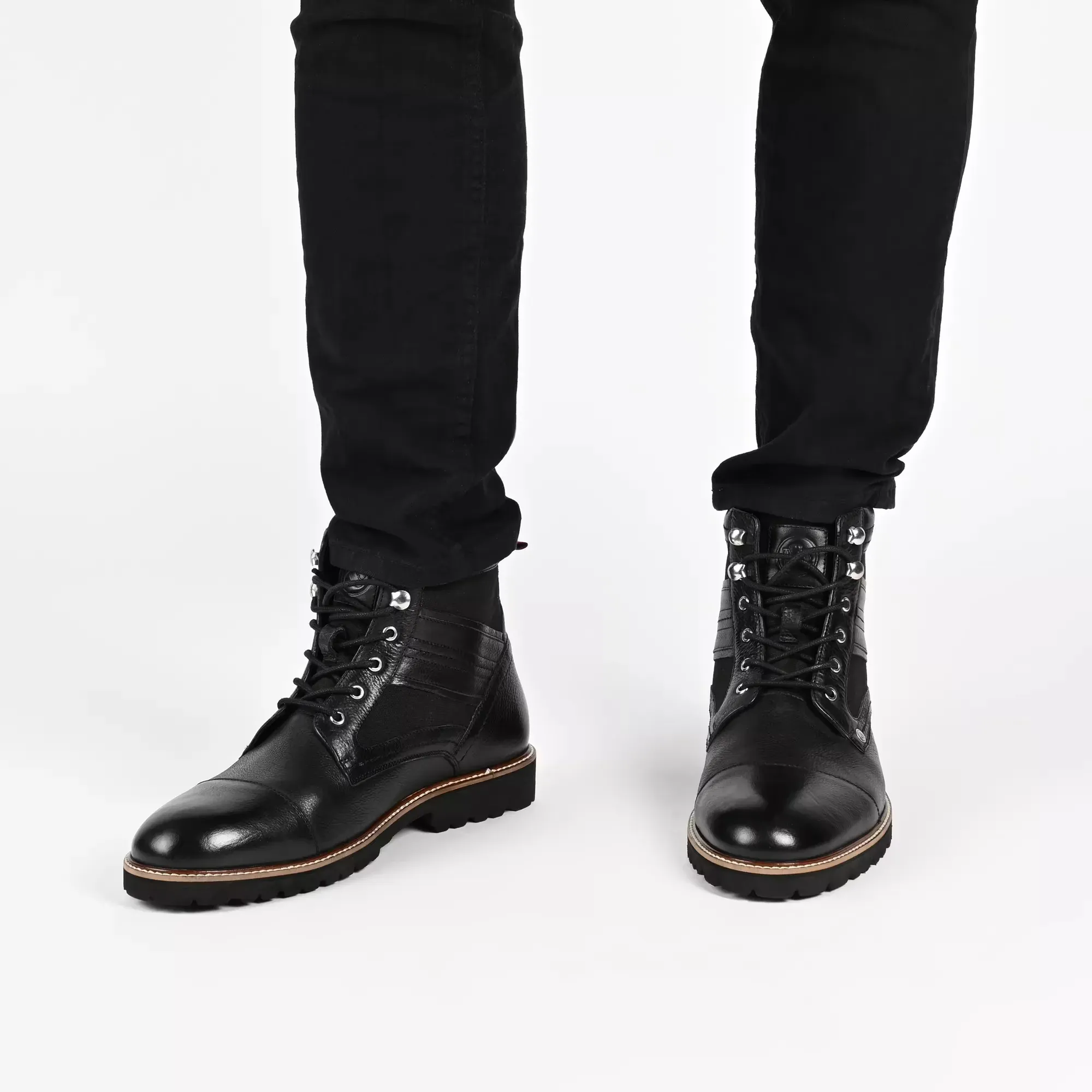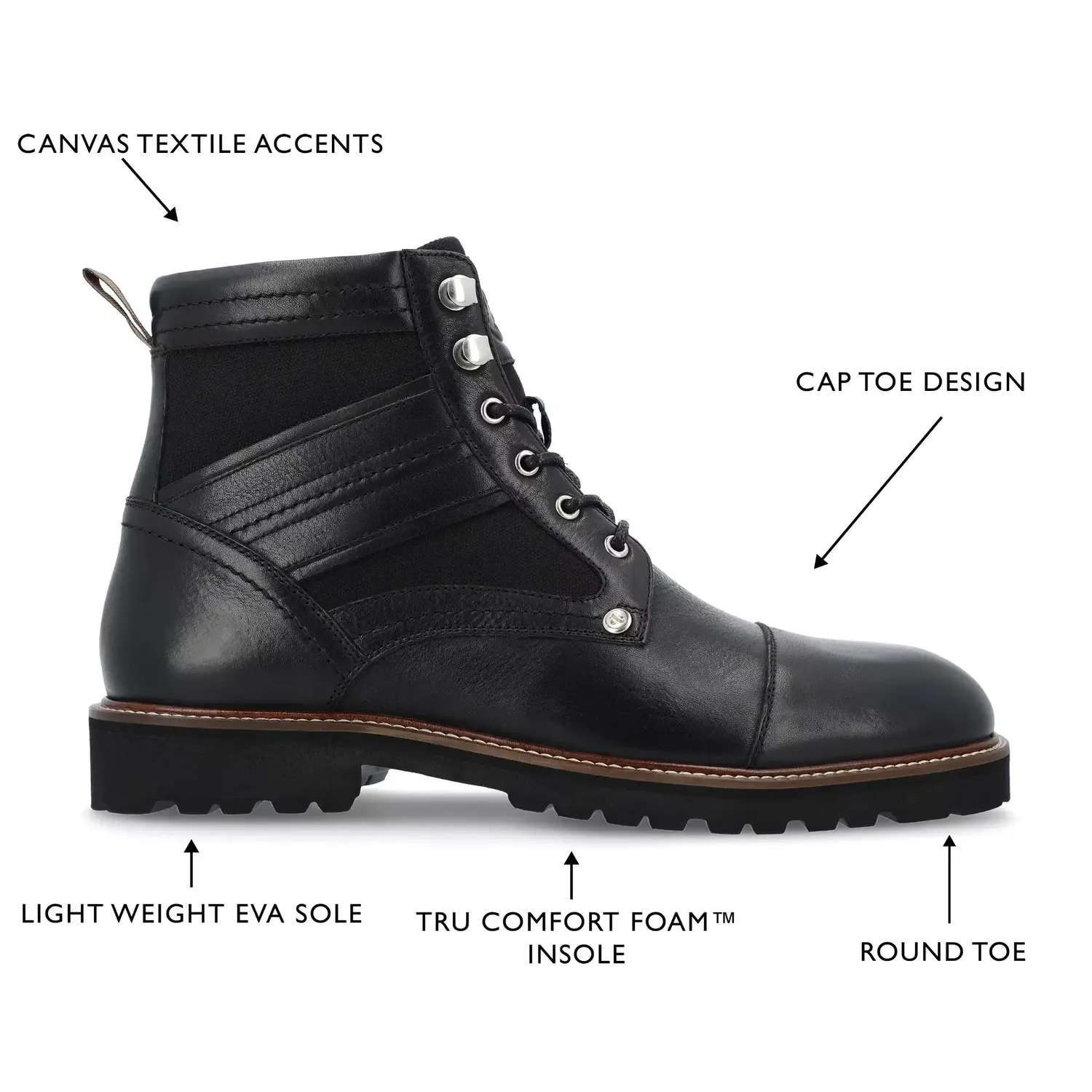 Ботинки Feron от Thomas & Vine помогут вам выглядеть впечатляюще весь день. Эти ботинки на шнуровке, изготовленные из натуральной кожи, оформлены накладками, металлическими люверсами и канвасными текстильными акцентами. С стелькой из Tru Comfort Foam вы сможете наслаждаться настоящей амортизацией в течение всего дня.