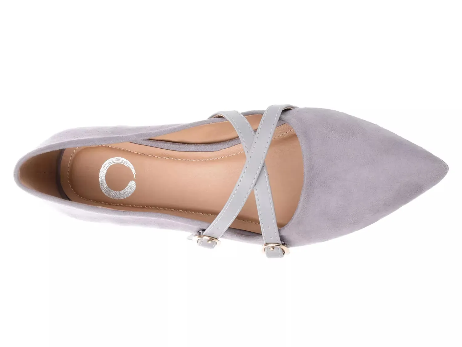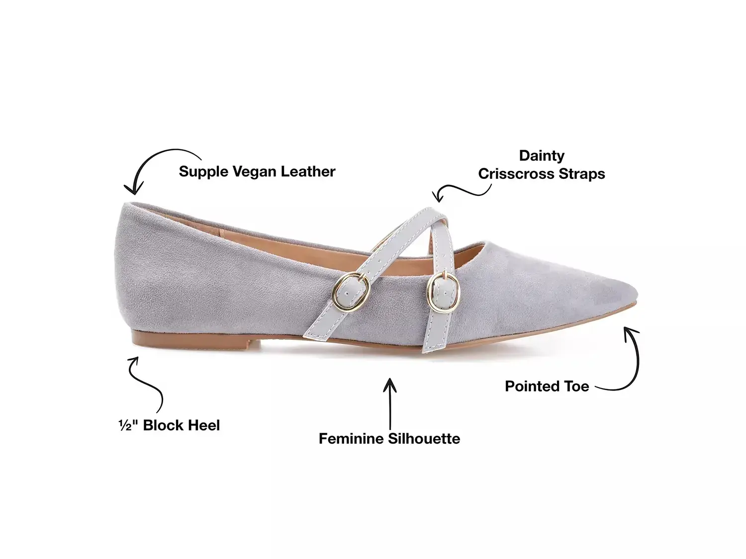 Балетки Patricia от коллекции Journee придают вам стильный вид и комфорт. Украсенные перекрестными ремешками с декоративными пряжками, эти балетки с открытым носком дополнены элегантным заостренным носом и мягкой стелькой для комфортной посадки.