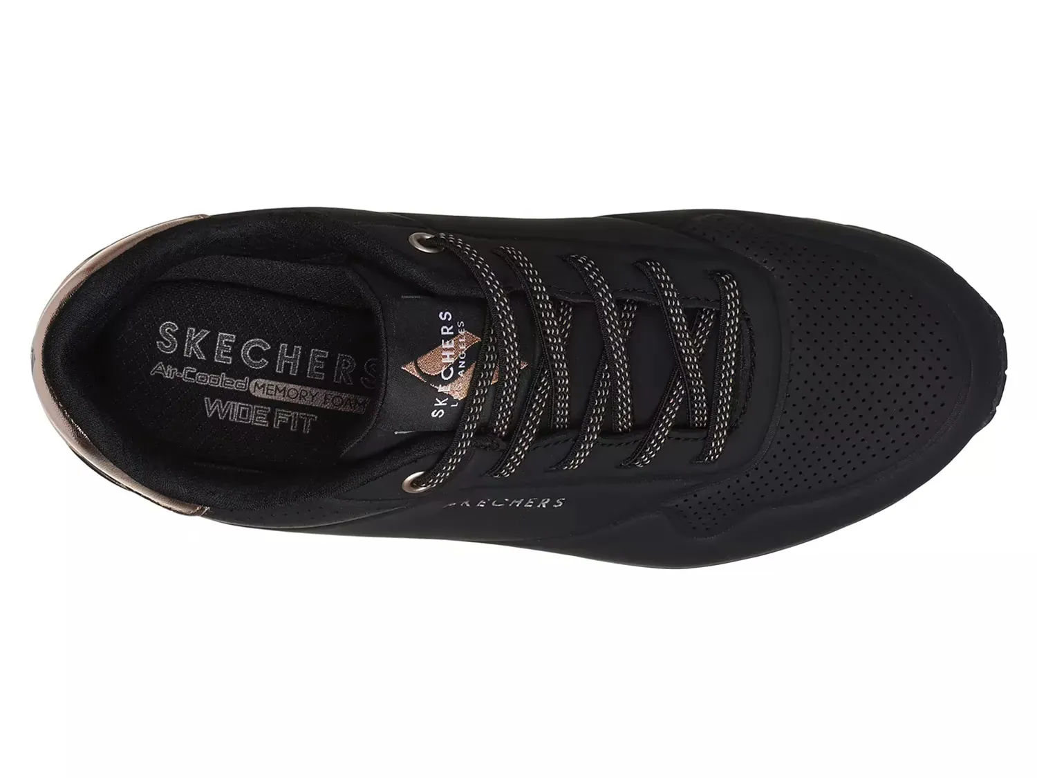 Придайте своему образу непринужденный повседневный стиль с кроссовками Uno Shimmer Away от Skechers. Верх из синтетического материала durabuck с металлическими акцентами и эластичными шнурками подчеркивает этот слип-он кроссовок. Его подошва из воздушной охлаждаемой мемори-фомы, видимая воздушная подушка Skech-Air и гибкая протекторная подошва обеспечивают плавные и естественные движения.