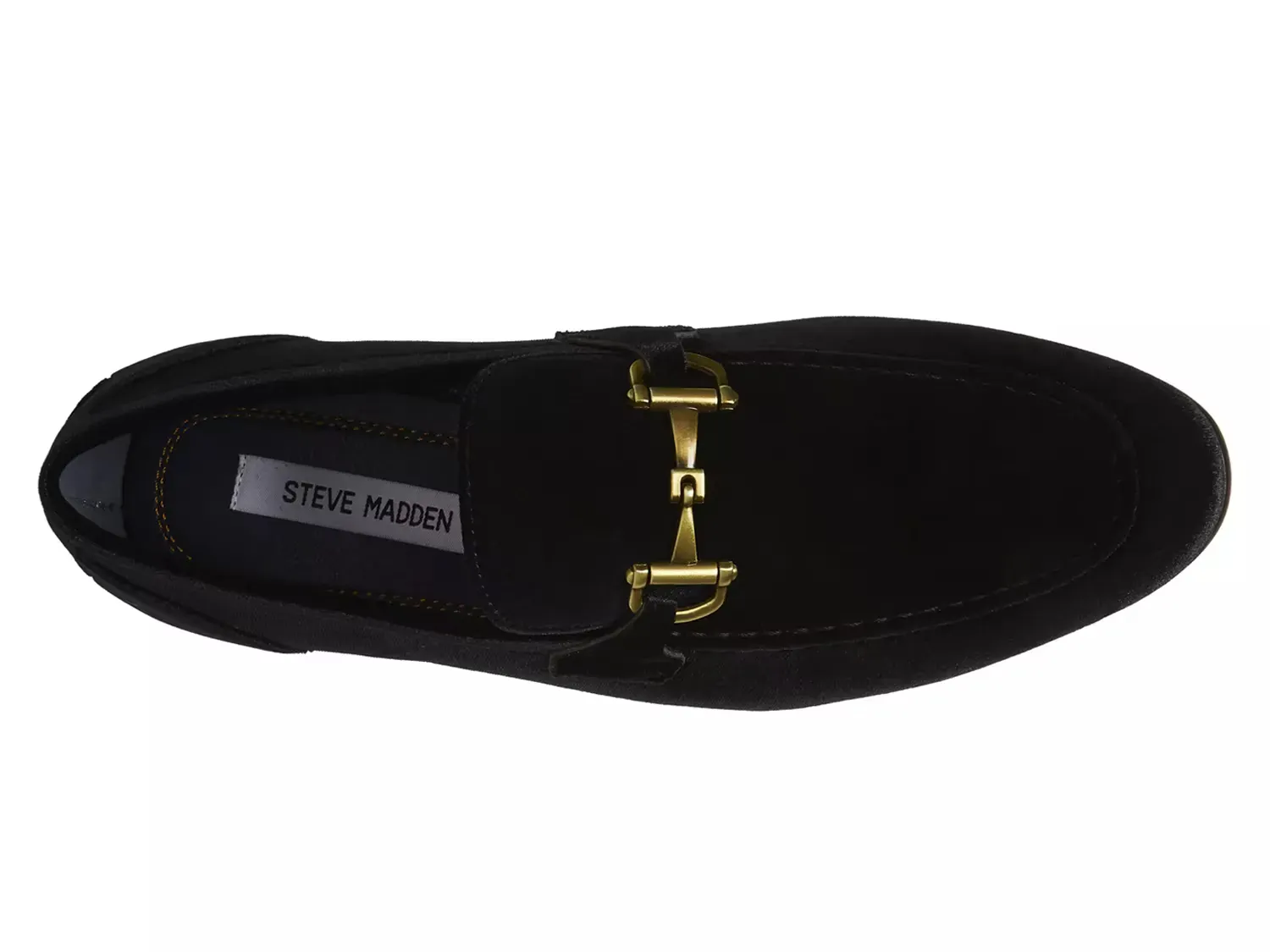 Погрузитесь в неформальную элегантность с лоферами Delrayy от Steve Madden. Эта пара из мягкого велюра имеет акцент в виде металлической детали в состаренном золоте и стильный, полностью черный дизайн.