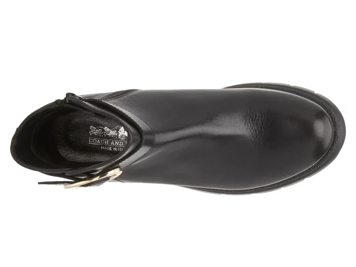 Тренд встречается с вечностью в ботильонах Blazer от Coach and Four. Стиль с массивной подошвой отличается простым силуэтом, выполненным из качественной кожаной ткани и элегантным золотистым пряжкой.