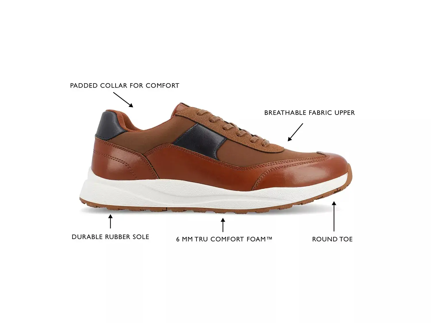 Добавьте непринужденный шарм к вашему стильному образу с помощью кроссовок Thomas от Vance Co. Скуна Tru Comfort Foam обеспечивает превосходную амортизацию и поддержку на каждом шагу. Устойчивая резиновая подошва улучшает сцепление и стабильность, что делает их идеальными для городских прогулок и повседневных выходов.