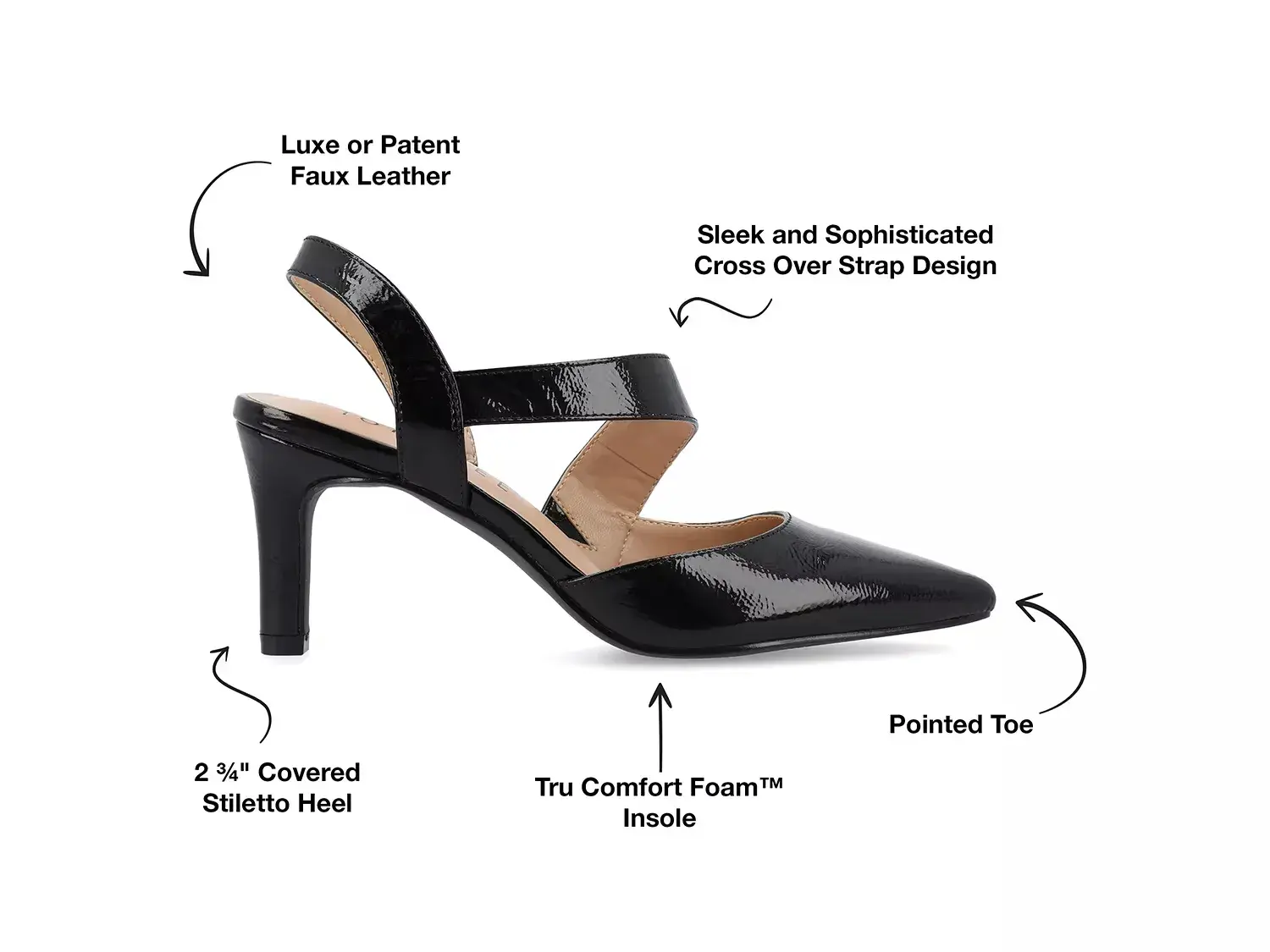 Смотрите поразительно красиво в туфлях Scarlett из коллекции Journee. Ассиметричная ремешок придаёт стильный вид туфлям с заострённым носком, дополненным удобной стелькой Tru Comfort.