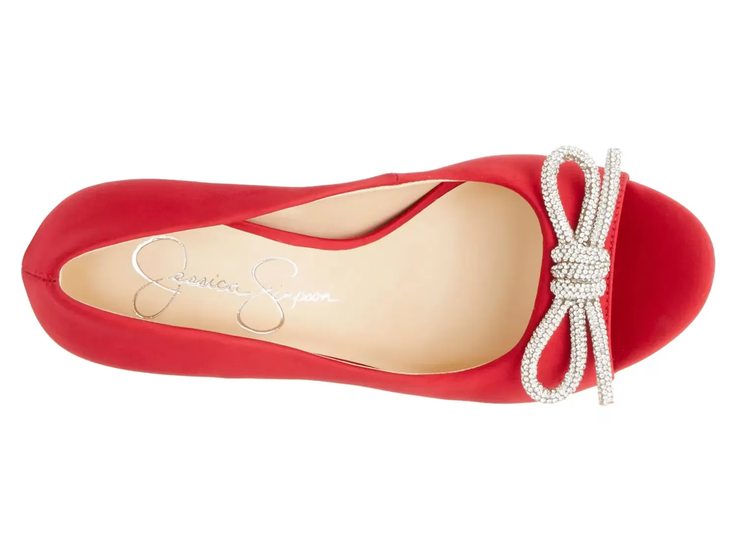 Вы будете выглядеть идеально в туфлях на каблуках Imuna от Джессики Симпсон. Эта пара отличается ярким цветом благодаря красному сатиновому материалу. Завершает образ деталь с брошью из страз, украшенная бантом на носке, для искрящегося акцента.
