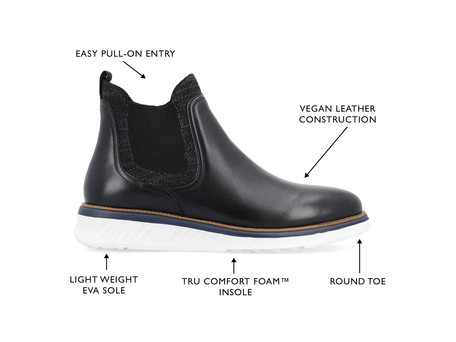 Поднимите свой стиль с помощью ботинок челси Hartwell от Vance Co. Эластичные вставки в этих ботинках обеспечивают вам комфортную посадку. Стелька Tru Comfort Foam массирует ваши ноги, в то время как подошва из EVA улучшает комфорт во время ходьбы.