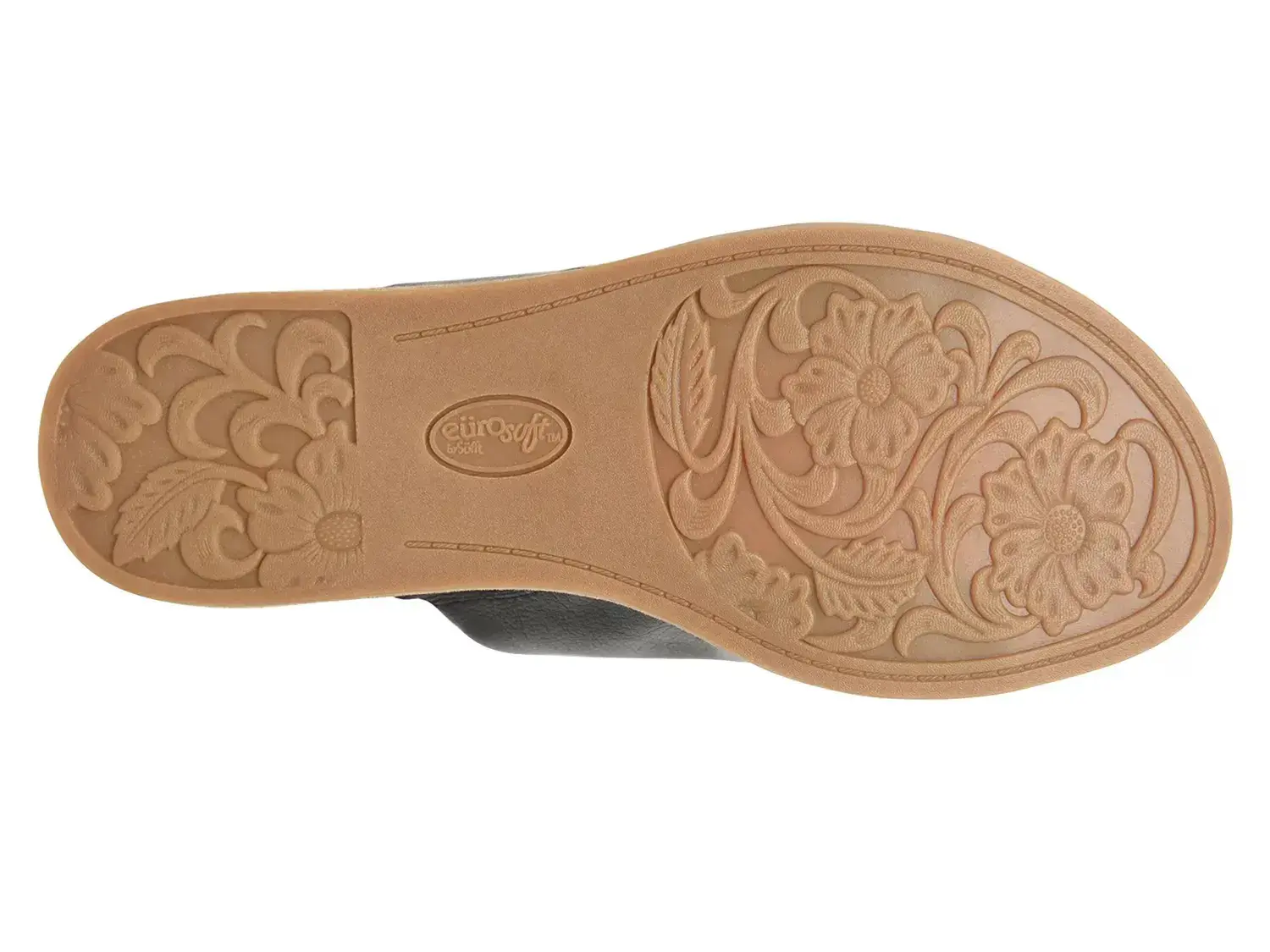 Выглядите без усилий стильно в сандалиях Elesha от Eurosoft. Сделанные с верхом из одного ремешка, эти шлепанцы имеют легкую поролоновую стельку для впечатляющего комфорта. Небольшой каблук с текстурированной поверхностью обеспечивает модный подъем.