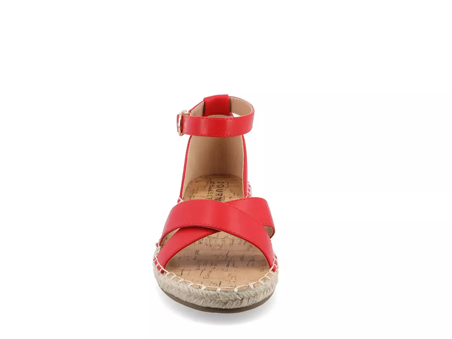 Сандалии Lyddia от коллекции Journee завершают летние образы своим пляжным эспадрильным средником, выразительной строчкой и крест-накрест ремешками. Буква в форме подковы на ремешке лодыжки создает привлекательный завершающий акцент.