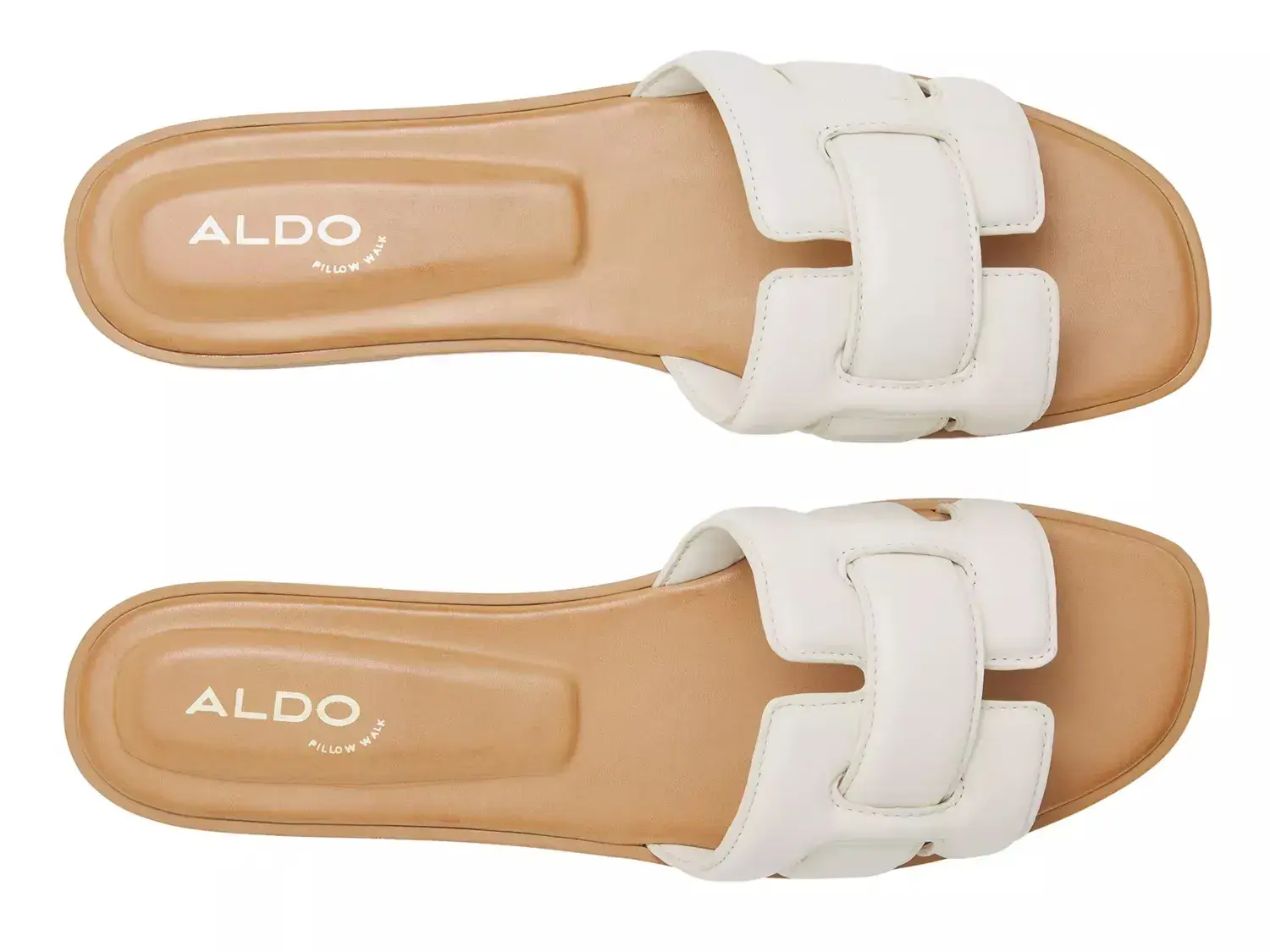 Сделайте ваше лето запоминающимся с сандалиями Aldo Elenaa. Верх из кожи с переплетенными ремешками придает уникальность этим слайд-сандалиям, завершенным современным квадратным носком. Технология Flex обеспечивает дополнительный комфорт.