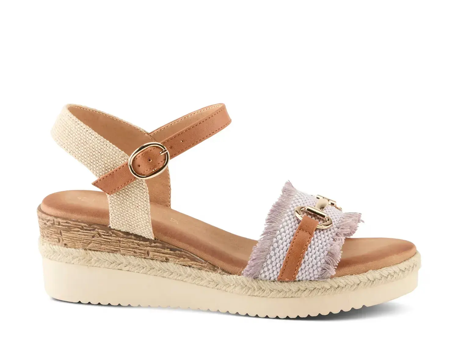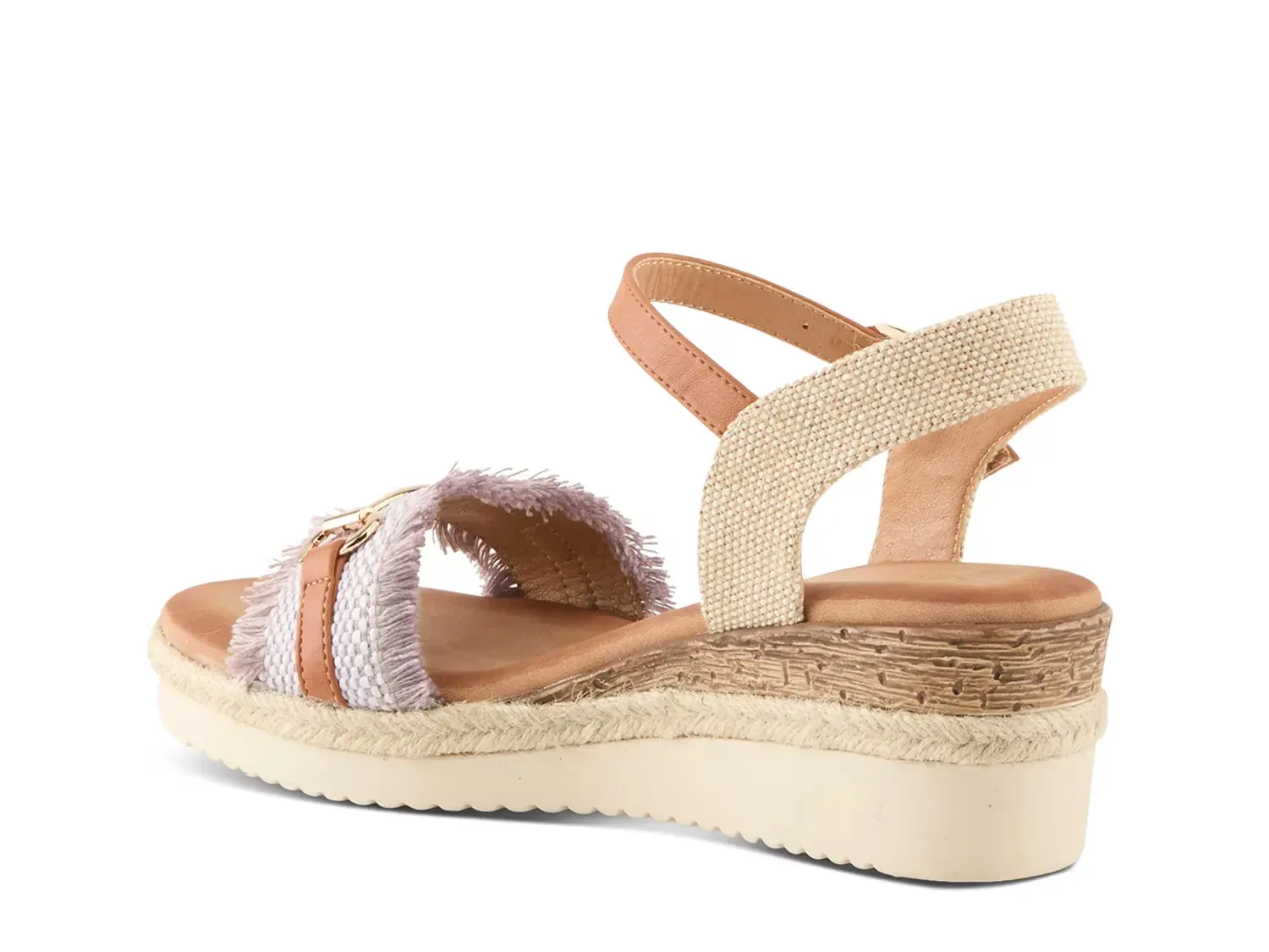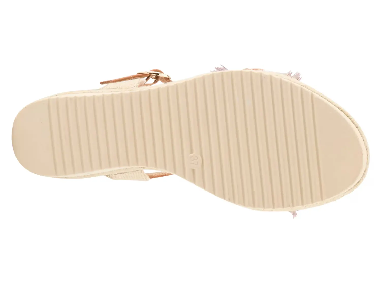 Шагните в стиль с wedges сандалиями Patrizia Lemire. Эта сандалия с округлым открытым носком оснащена очаровательными ремешками на пальце и на лодыжке на структурированном клиновидном каблуке. Контрастная искусственная кожа, канвас двух цветов, детали из искусственного корка и оплетенные веревочные акценты добавляют текстуры и изюминки, в то время как низкопрофильная платформа и мягкая стелька обеспечивают комфорт на весь день.
