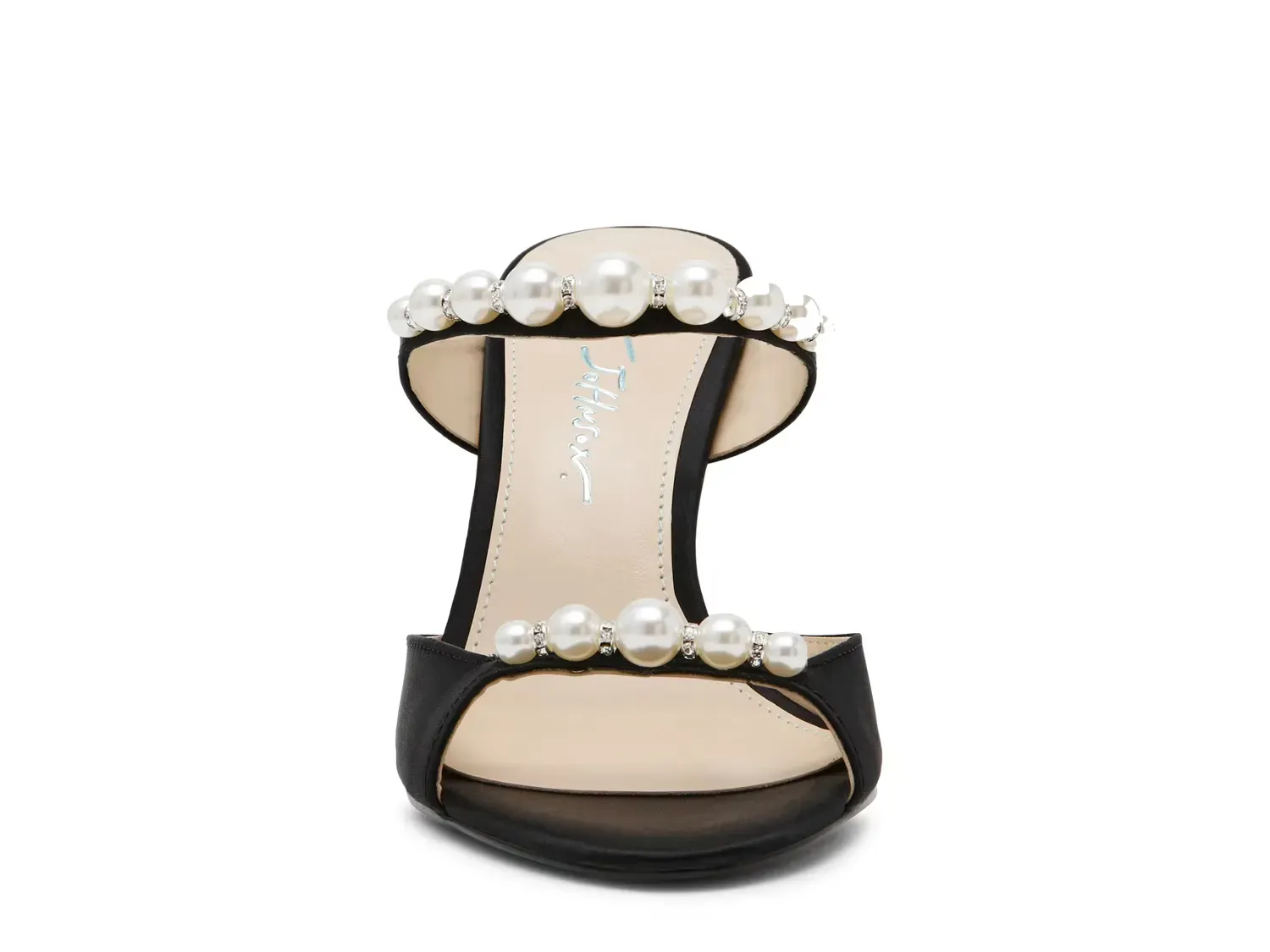 Наслаждайтесь элегантным стилем, надев сандалии Giaa от Бетси Джонсон. Эта изысканная пара имеет расклешенный каблук, жемчужные акценты на ремешках и детали из страз.