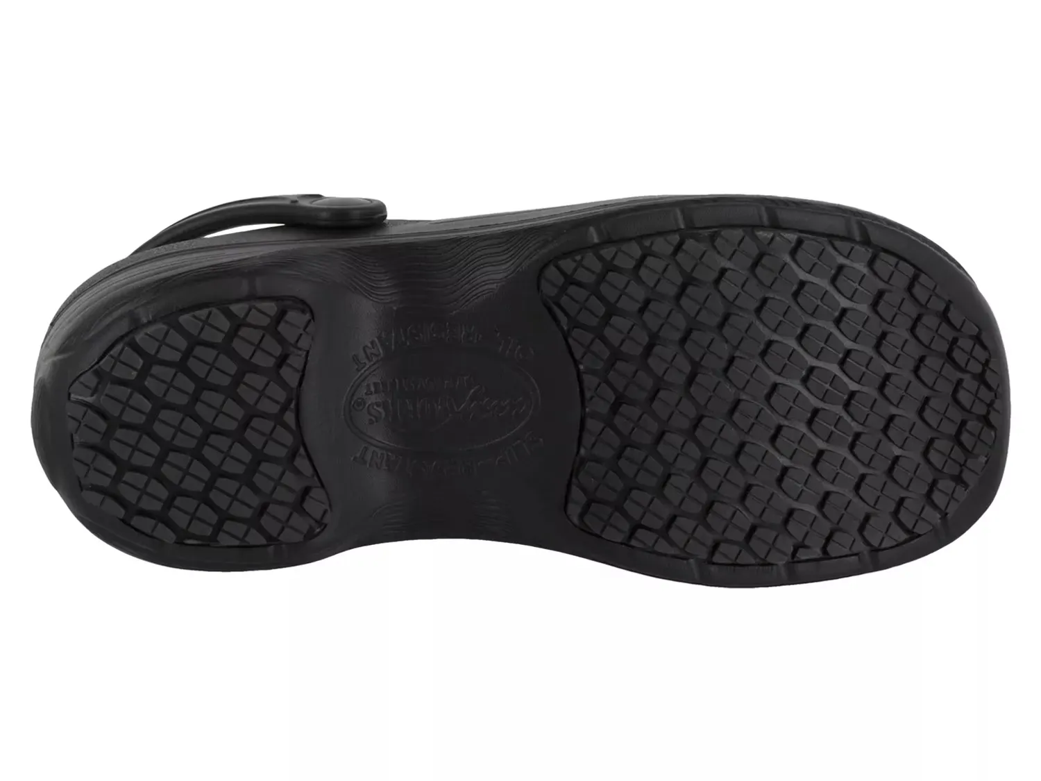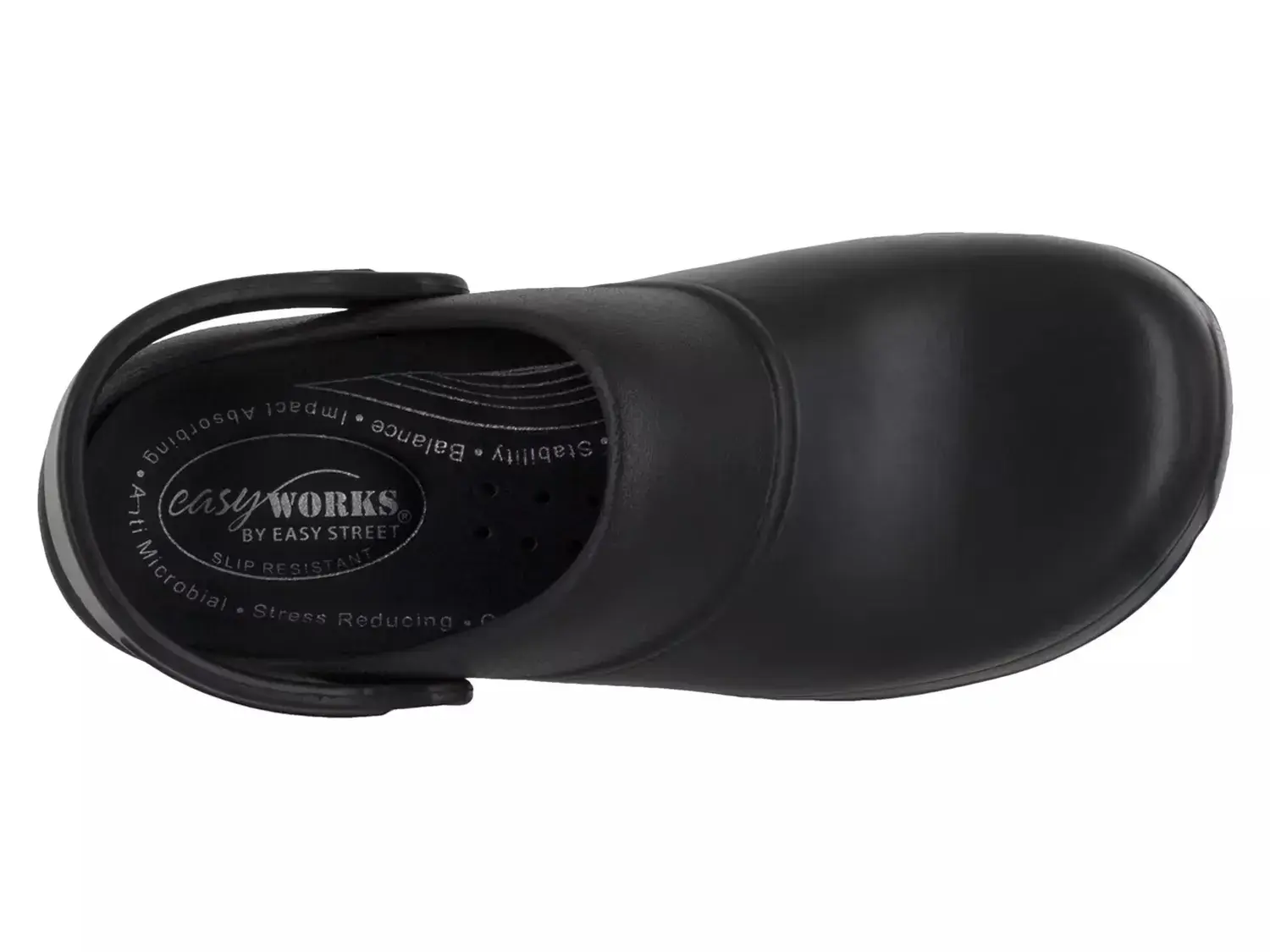 Простые работы от Easy Street — это сабо, которое обеспечит вам комфорт на перегруженной строительной площадке. Легкий верх из EVA, съемный ремешок, вынимающаяся формованная стелька, подушечка для свода стопы, углубление для пятки и подошва с противоскользящими и маслостойкими резиновыми вставками делают это сабо надежным выбором.