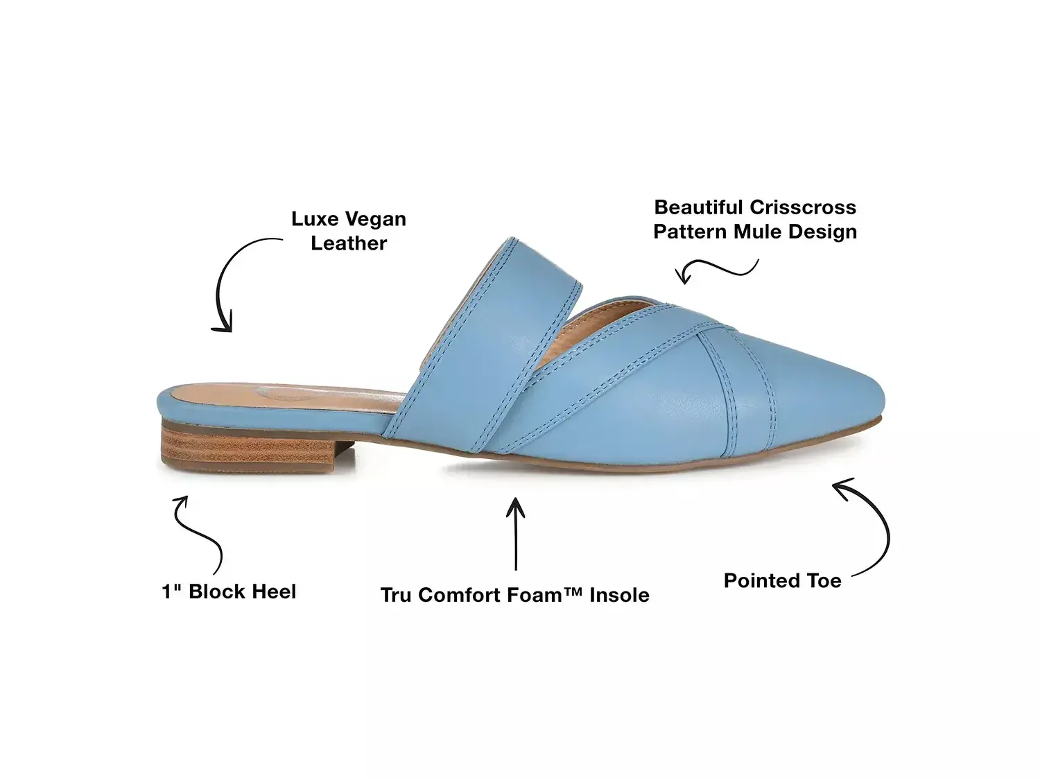 Оставайтесь элегантными и минималистичными одновременно в сандалиях-мюлях Stasi от коллекции Journee. Отлично подходят для ношения в течение всего дня, эти мюли с заостренным носком имеют красивые перекрещенные ремешки и 4 мм Comfort Foam стельку для длительного комфорта.