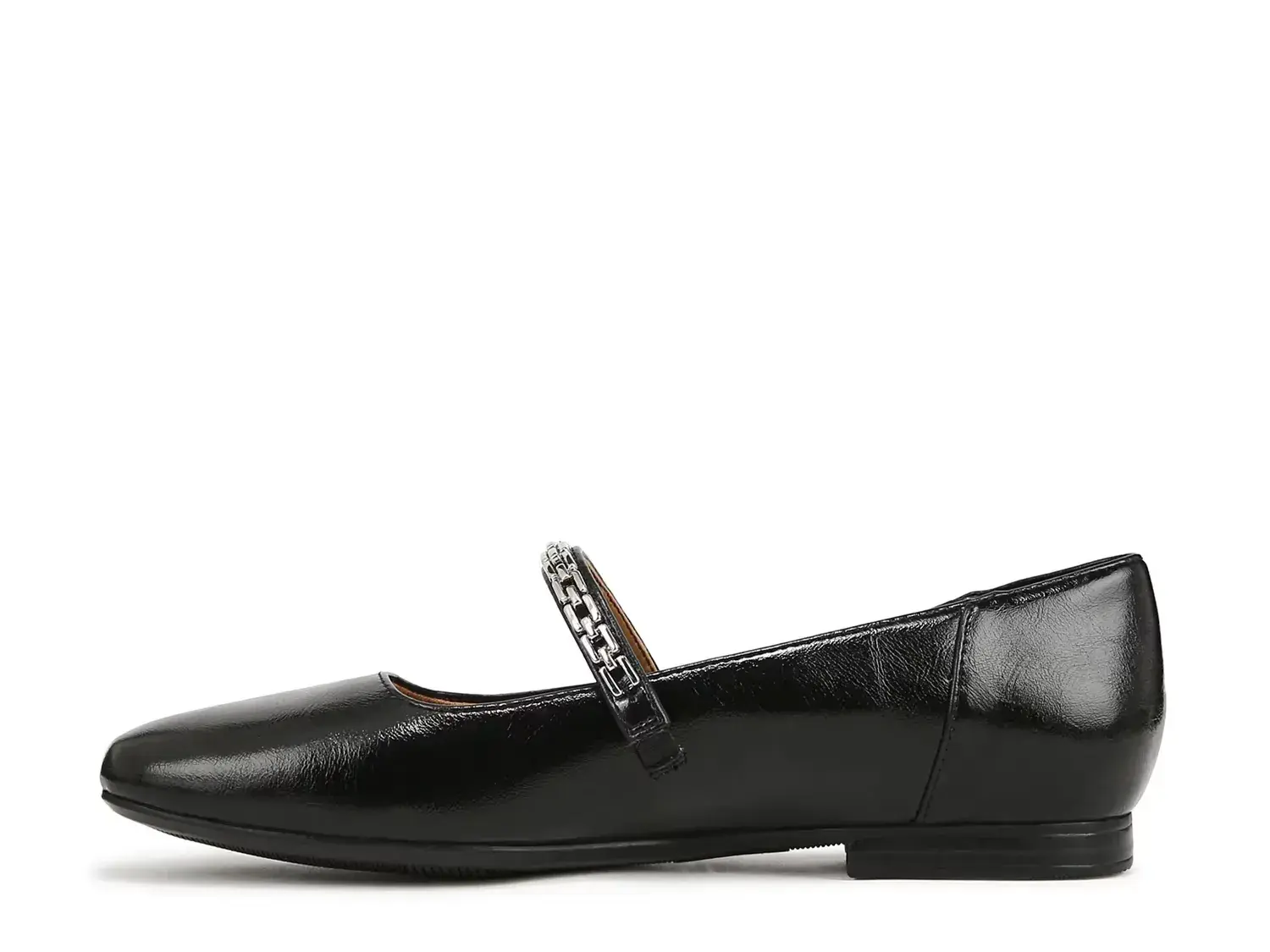 Балетки Kelly от Naturalizer придают немного остроты тренду Мэри Джейн. Ремешок с цепочкой и мягкая стелька с технологией Contour+ Comfort сделают эту пару вашей новой любимой.