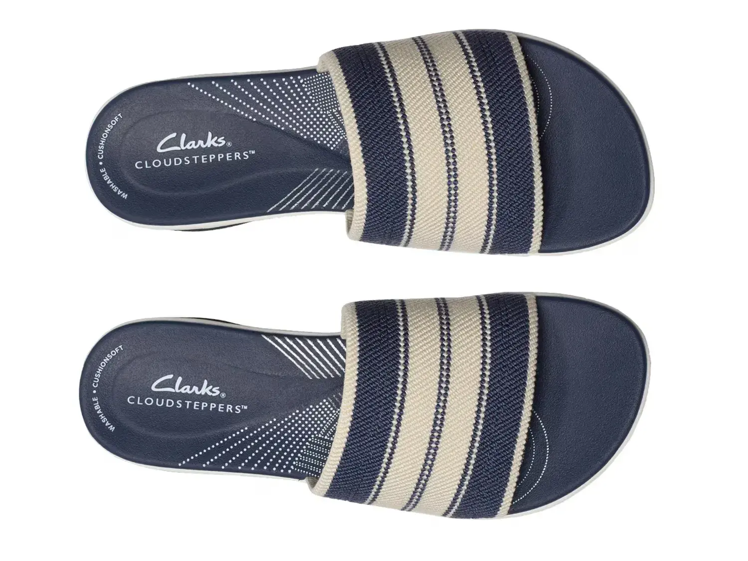Расслабьте свои ноги в сандалиях Cloudsteppers Arla Hollis. Полосатый текстильный верх обогащает этот слайд-сандал, а мягкая поролоновая стелька Cushion Soft обеспечивает комфорт вашим ногам весь день.