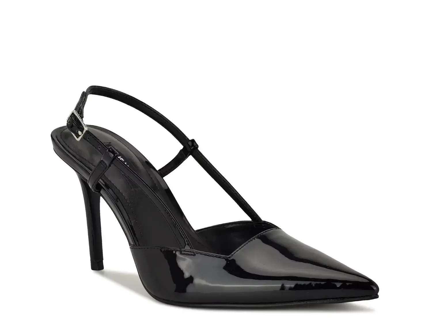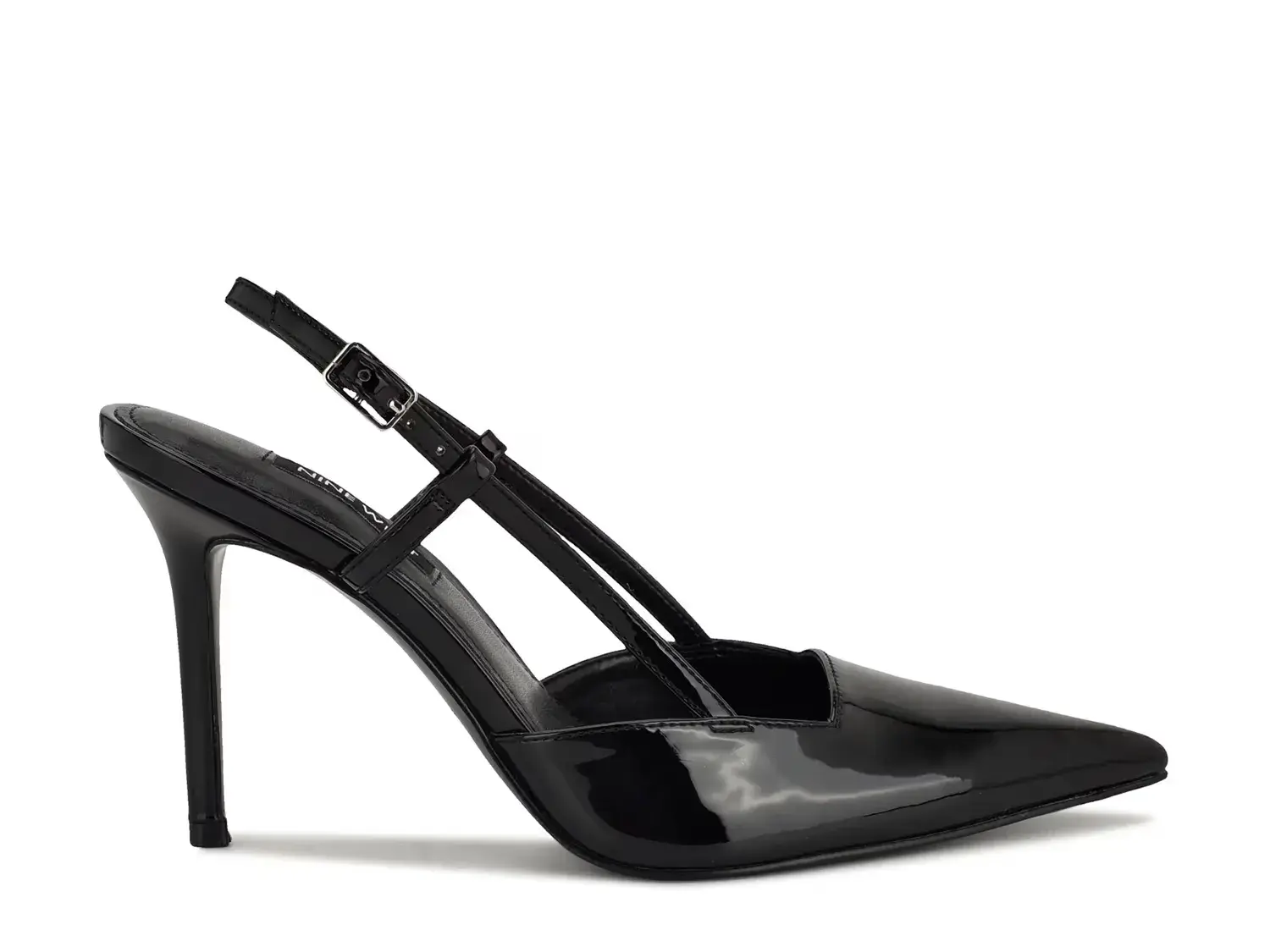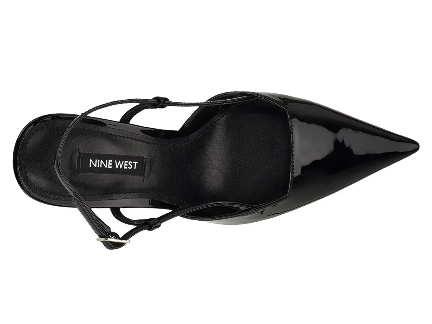 Совершенствуйте любой стиль с помощью туфель Mianda от Nine West. Эта блестящая пара имеет дизайн с открытой пяткой, тонкий каблук и элегантный заостренный нос.
