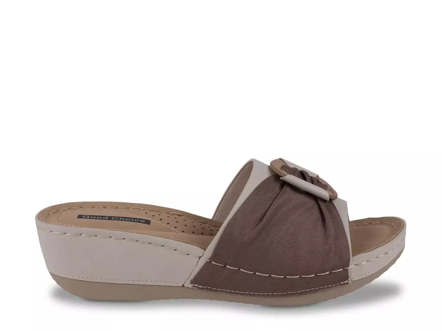 Вы не ошибетесь с классическим стилем wedge-сандалий Эллен от Good Choice. Они имеют мягкую стельку и декоративное кольцо на верхней части, что придает им универсальный вид.
