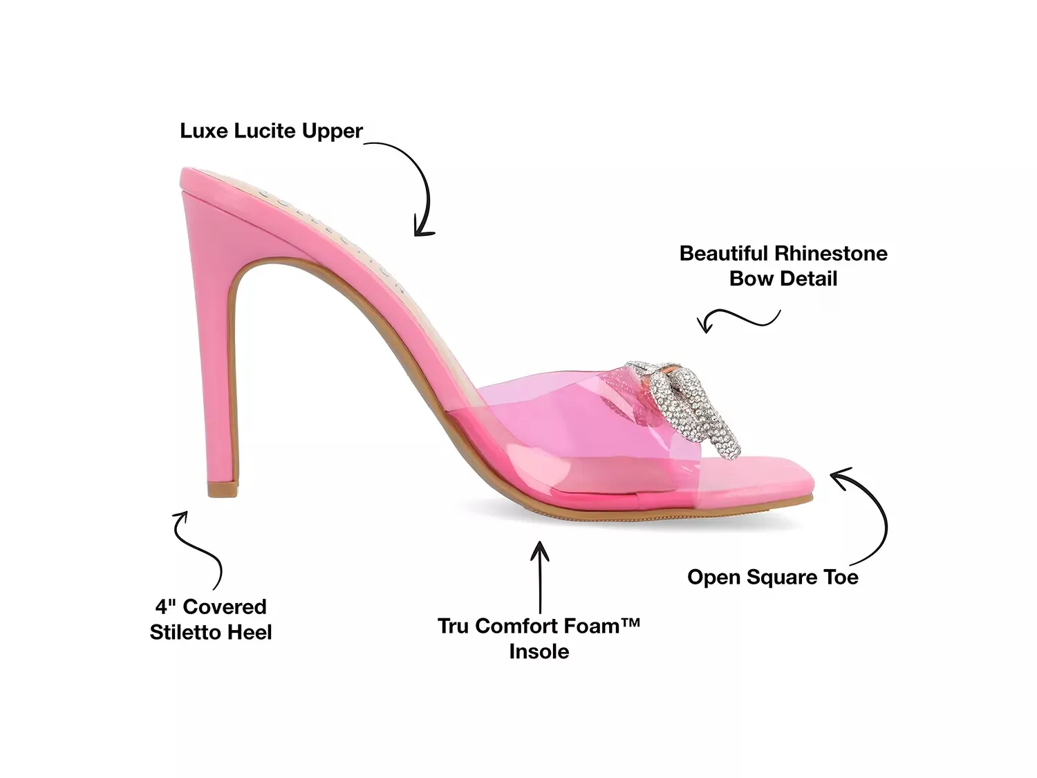 Стилизуйте сандалии коллекции Journee Collection Fenella под ваш праздничный наряд и привлеките внимания. Эти сандалии с декоративным бантом, украшенным стразами, спереди, завершаются 4-мм стелькой из мягкой пены Tru Comfort, каблуком-шпилькой и открытым квадратным носком для классического стиля и комфорта.