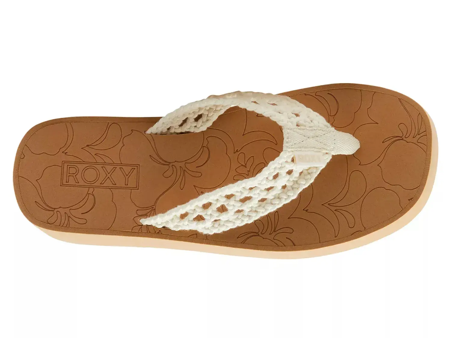 Обновите свой летний наряд с помощью сандалий на платформе Playa Dia от Roxy. Верх сандалий выполнен из макраме, что придает им привлекающий внимание вид. Эти тхонг-сандалии оснащены комфортной стелькой из ЭВА и резиновой подошвой с цветочным узором для улучшенного сцепления.