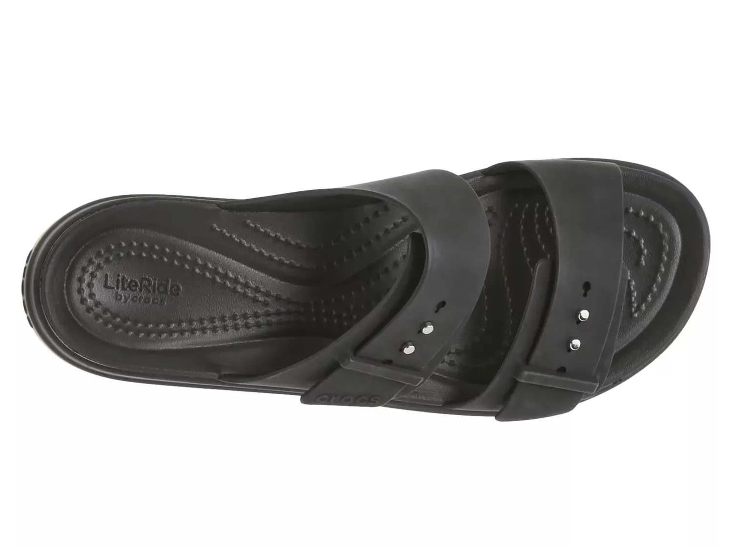 Сандалии на низком клине - женские Crocs, Black 9 050₽
