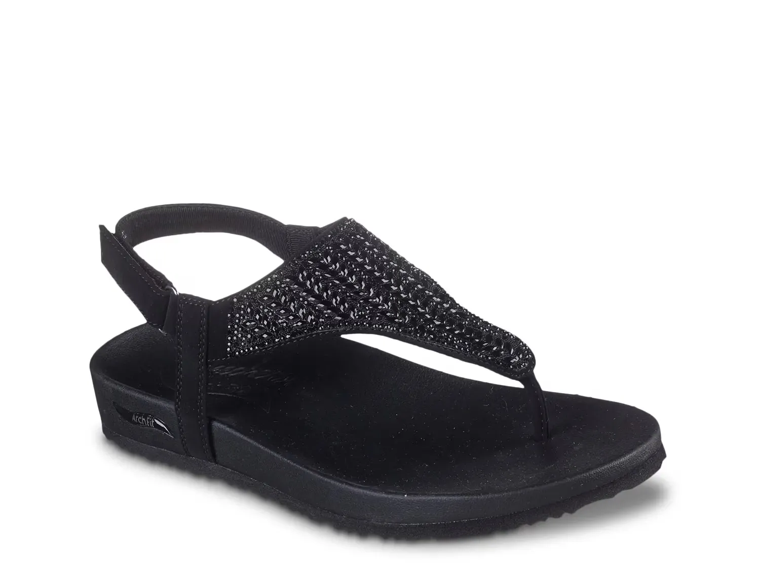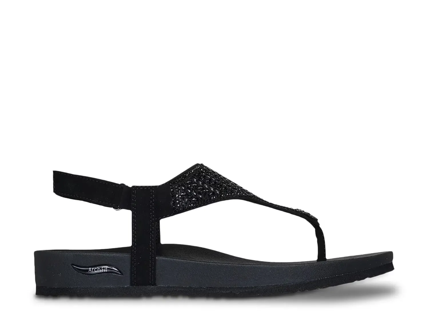 Освежите свой летний образ с помощью сандалий SkechersCali Arch Fit Meditation Hidden Gems. Патентованная контурная стелька Skechers Arch Fit с ортопедической поддержкой свода стопы обеспечивает комфортную опору, в то время как верх с блестящими акцентами из страз привлекает внимание.
